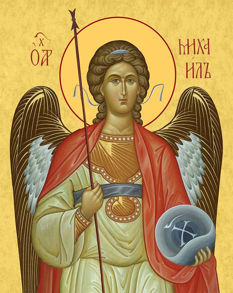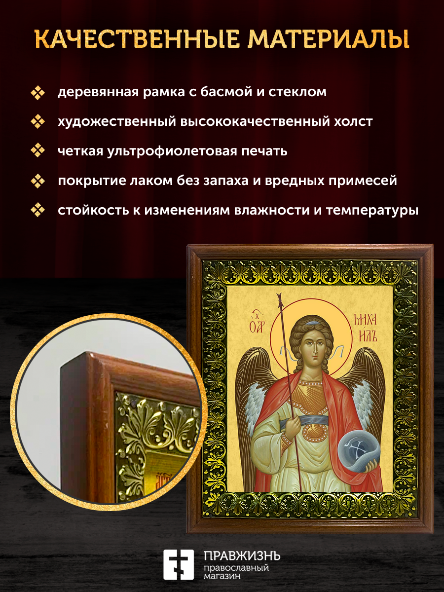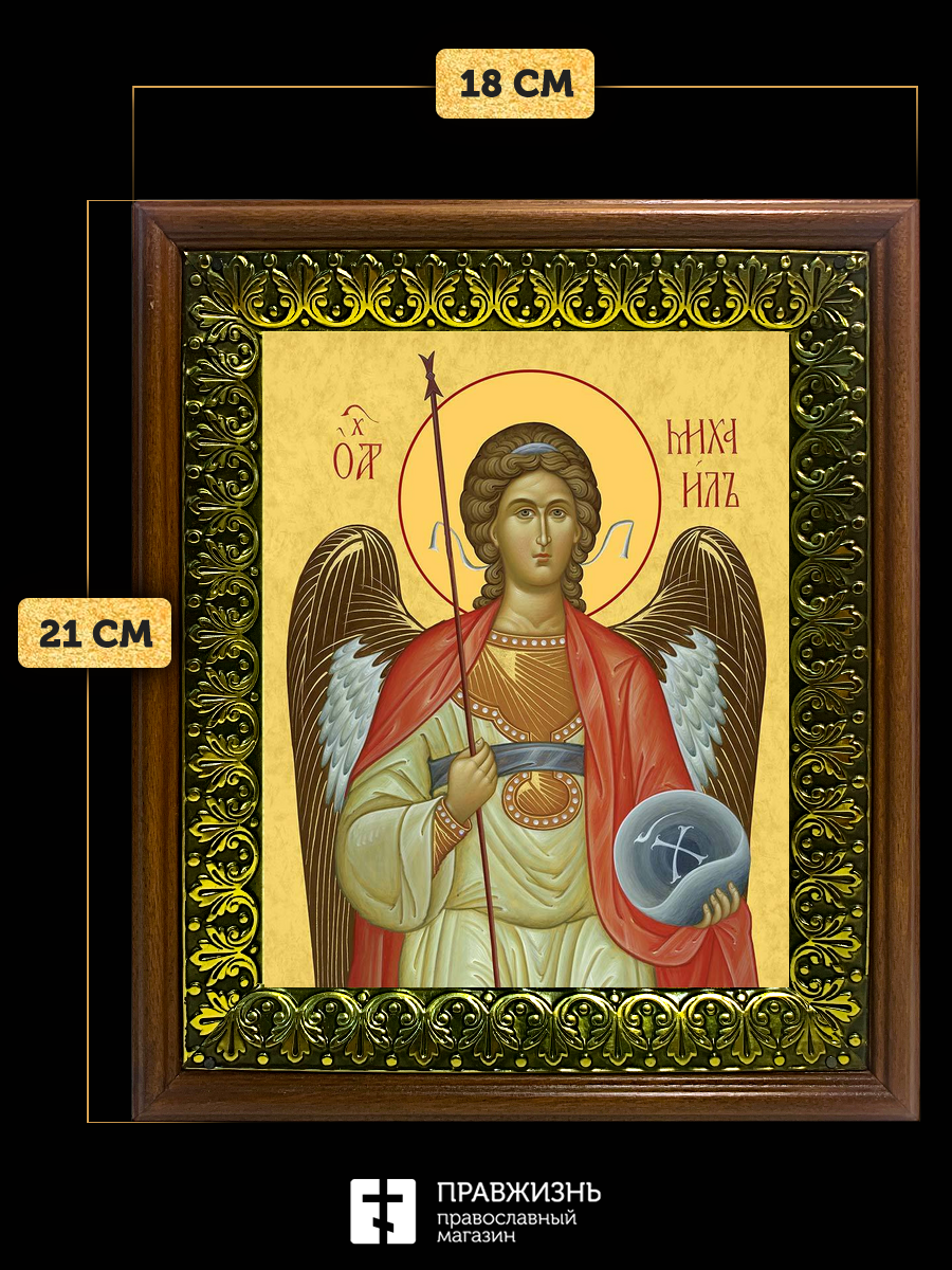 Икона Михаил Архангел, деревянная рамка с басмой и стеклом 18х21х2,5 см 105