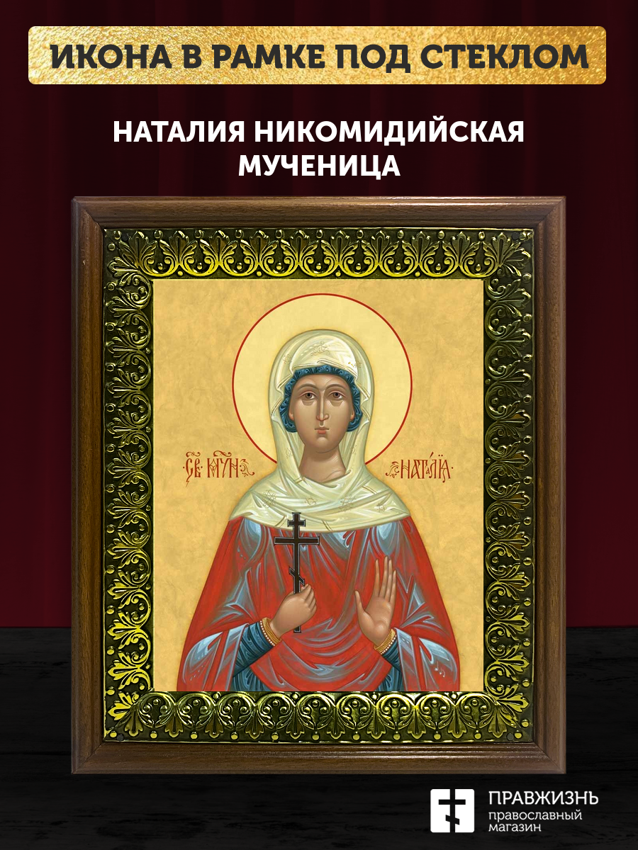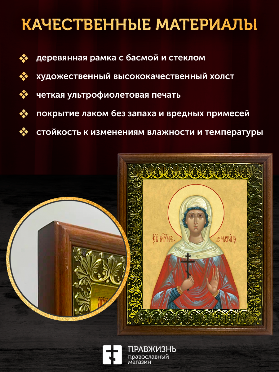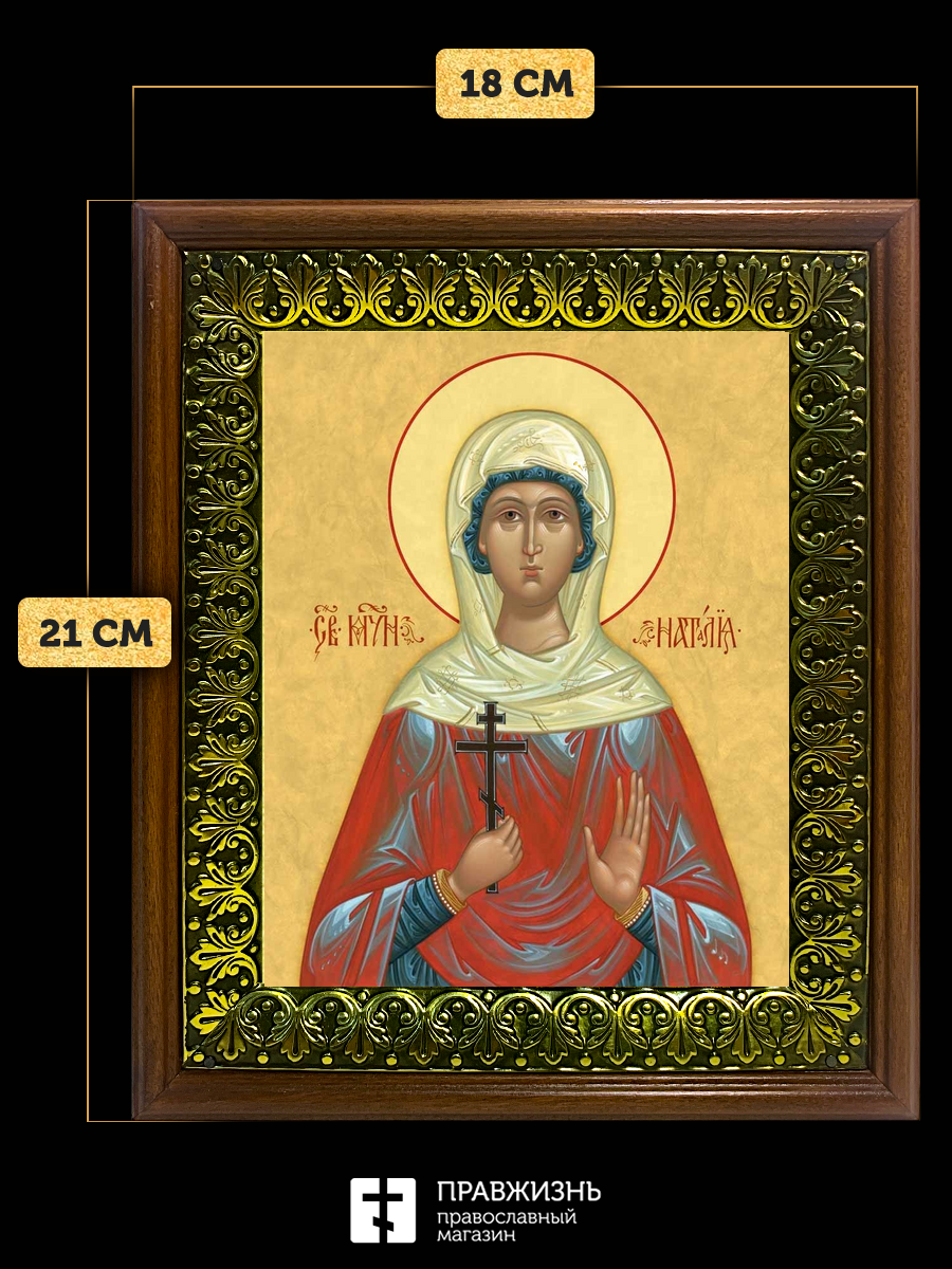 Икона Наталия Никомидийская мученица, деревянная рамка с басмой и стеклом 18х21х2,5 см 108