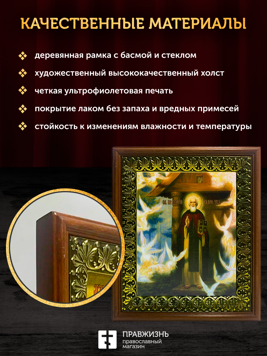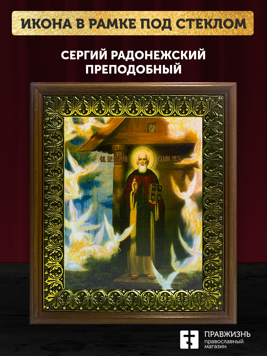 Икона Сергий Радонежский преподобный, деревянная рамка с басмой и стеклом 18х21х2,5 см 130