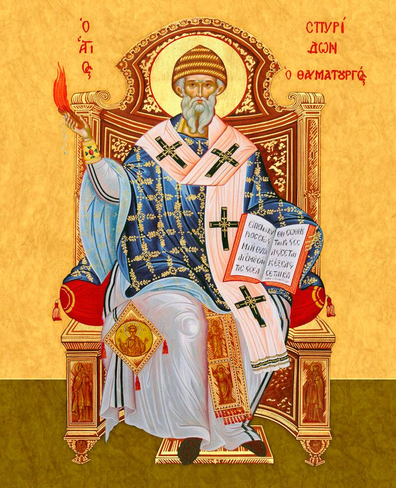 Икона Спиридон Тримифунтский святитель, деревянная рамка с басмой и стеклом 18х21х2,5 см 135