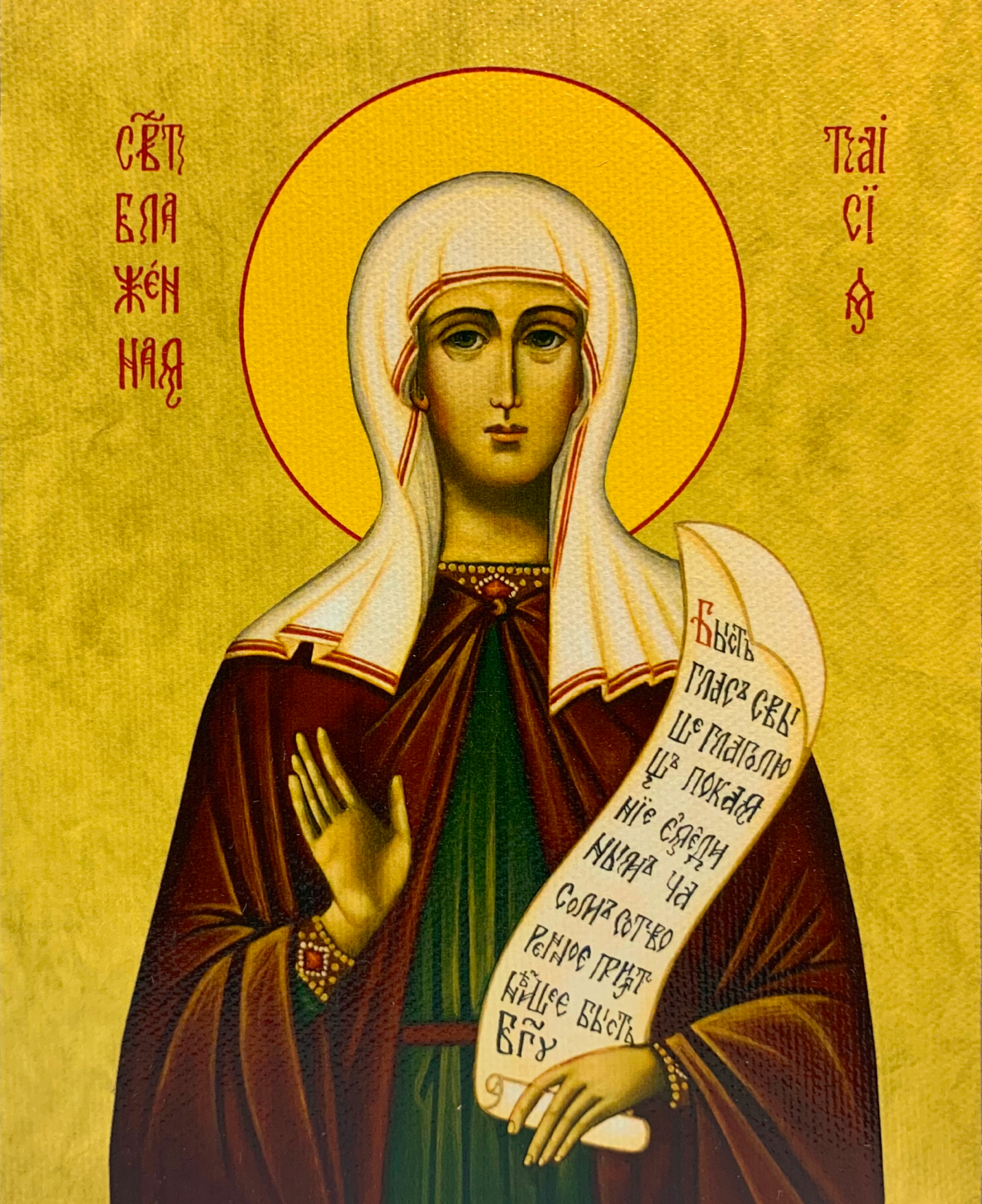 Икона Таисия Египетская блаженная, деревянная рамка с басмой и стеклом 18х21х2,5 см 167