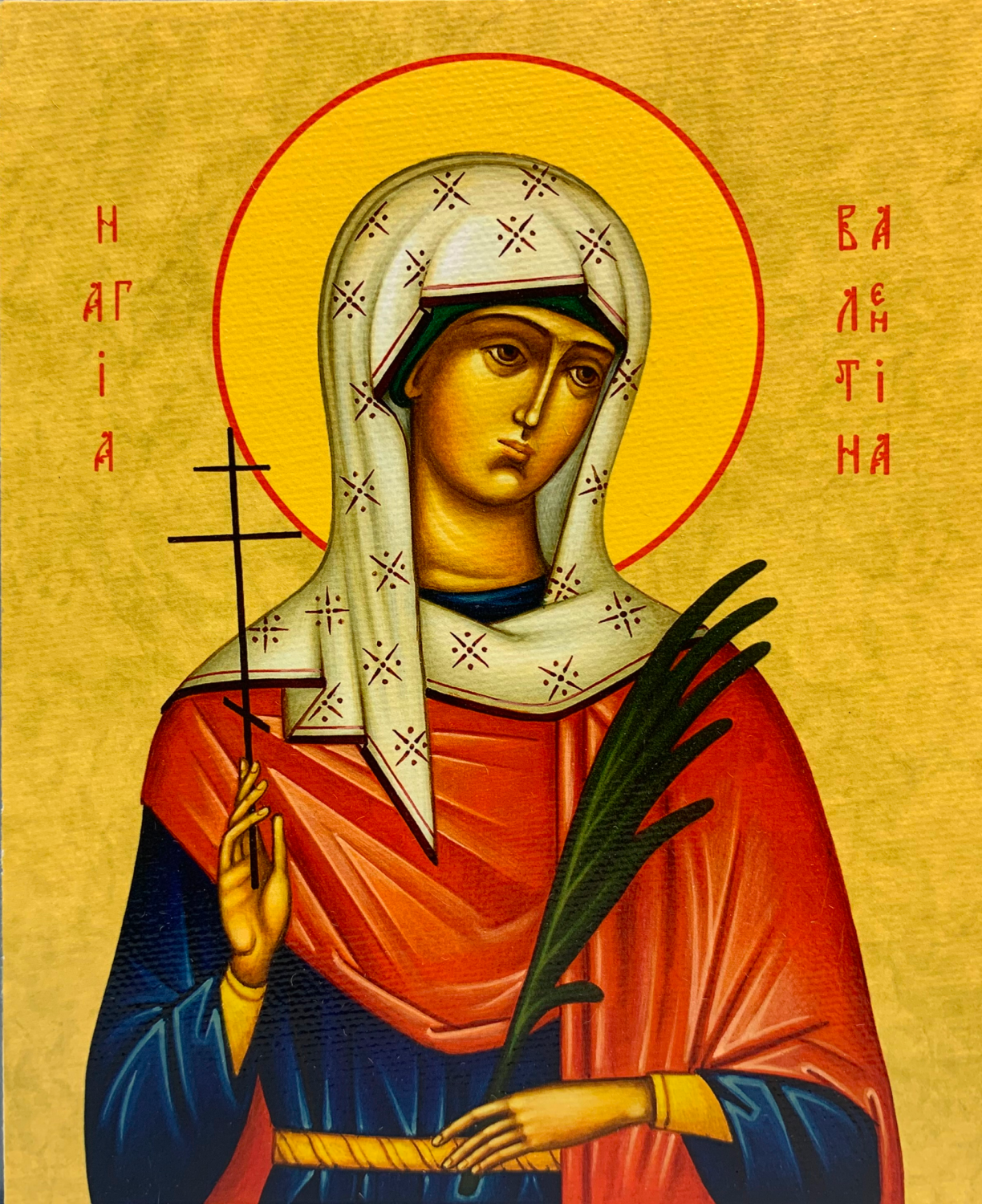 Икона Валентина Кесарийская мученица, деревянная рамка с басмой и стеклом 18х21х2,5 см 038
