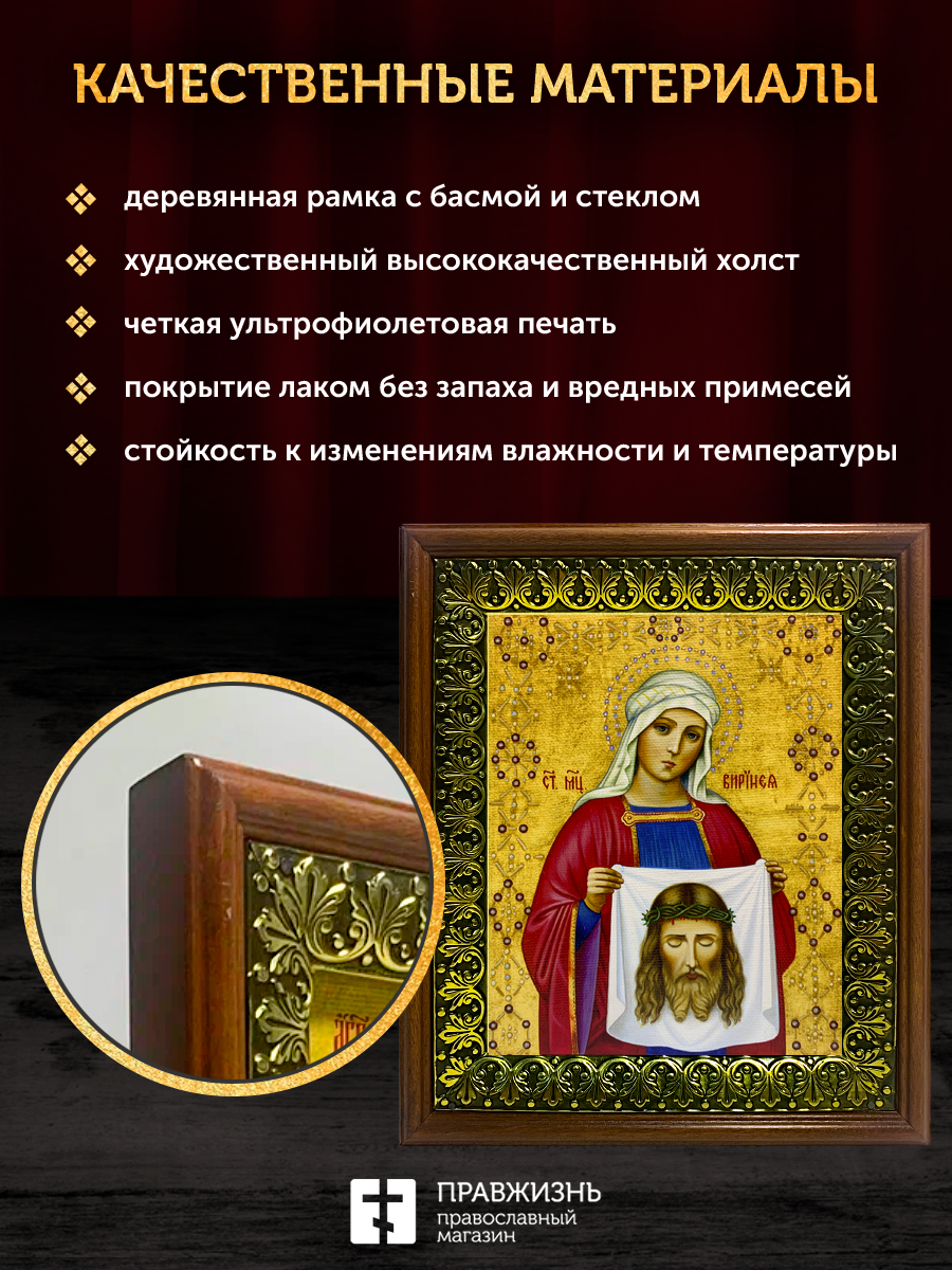 Икона Вероника Виринея Едесская мученица, деревянная рамка с басмой и стеклом 18х21х2,5 см 045