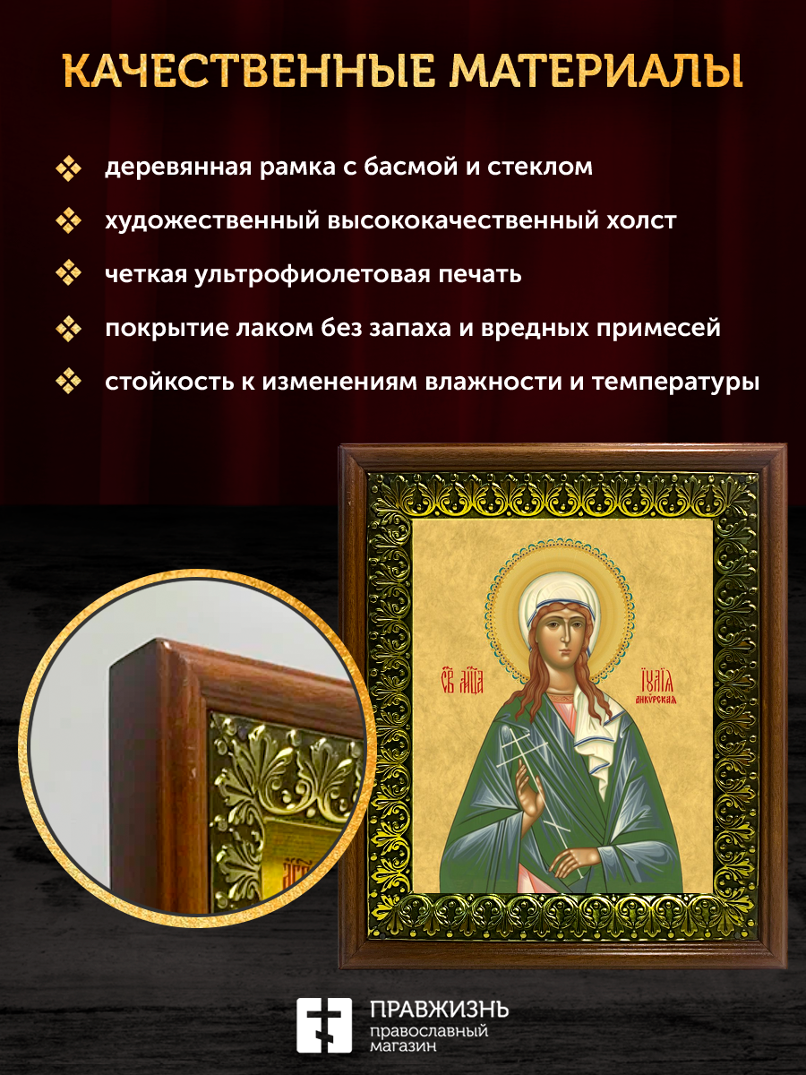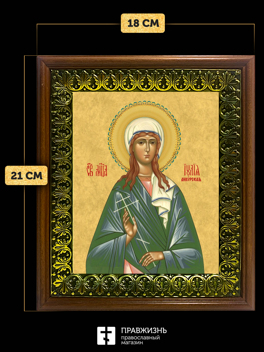 Икона Юлия Иулия Анкирская мученица, деревянная рамка с басмой и стеклом 18х21х2,5 см 148