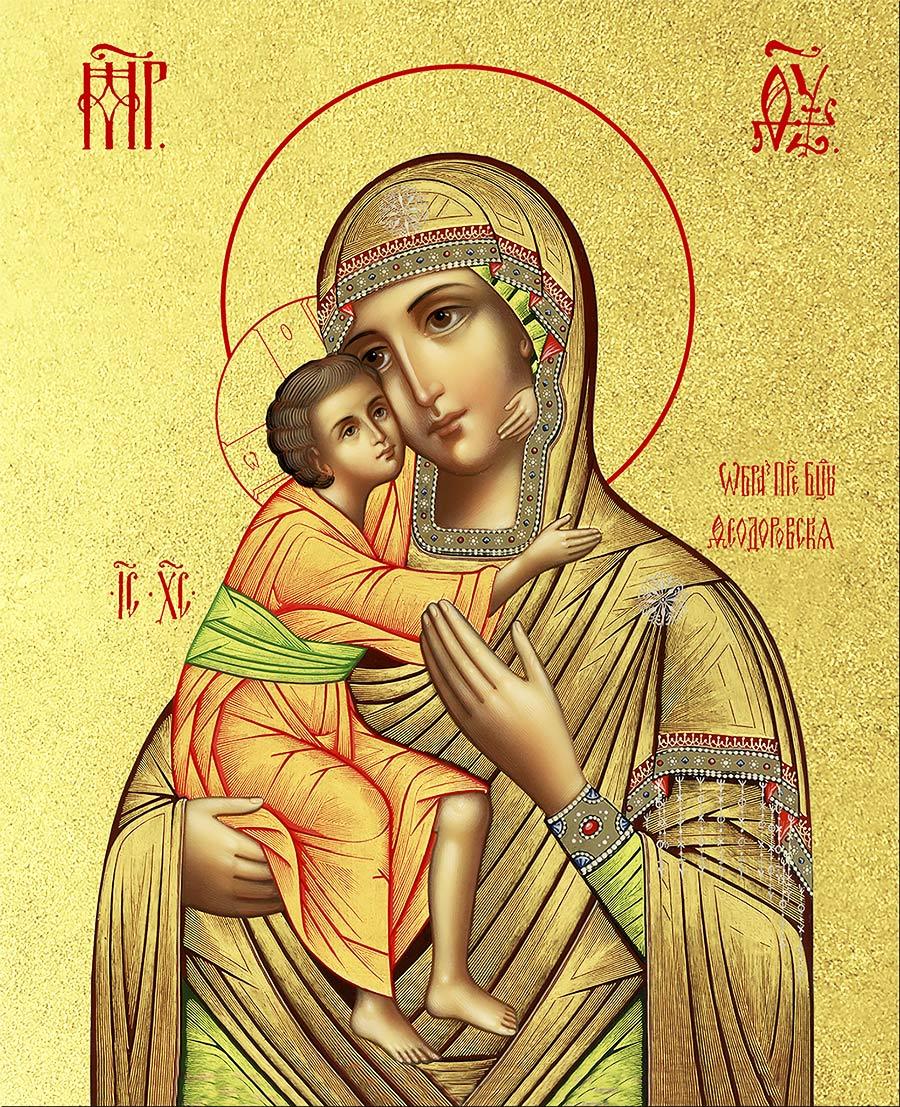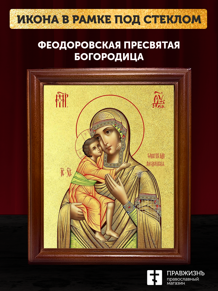 Икона Божией Матери Феодоровская с золочением, деревянная рамка со стеклом 15х18х2 см 145