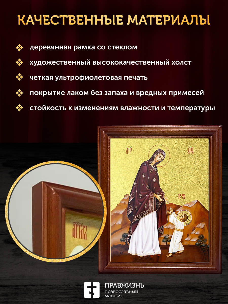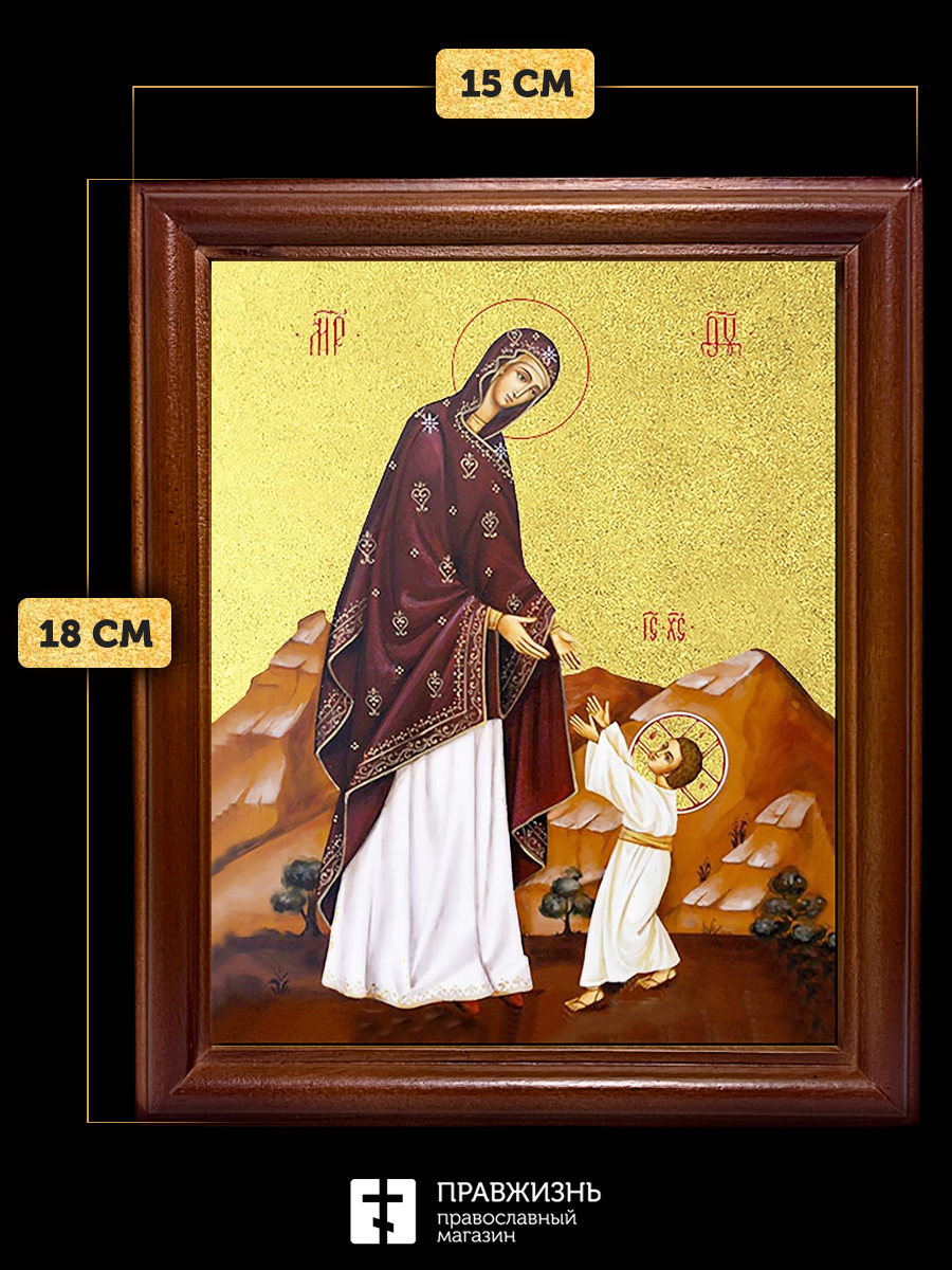 Икона Божией Матери Первые шаги Христа с золочением, деревянная рамка со стеклом 15х18х2 см