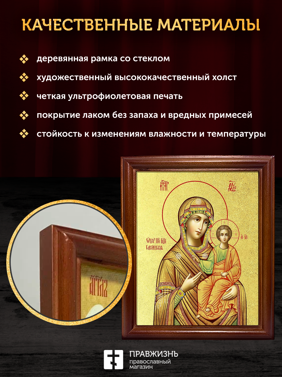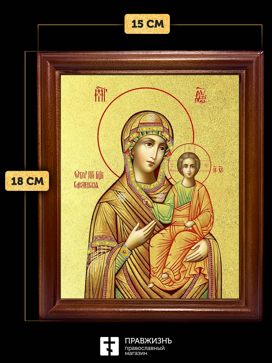 Икона Божией Матери Смоленская с золочением, деревянная рамка со стеклом 15х18х2 см 133