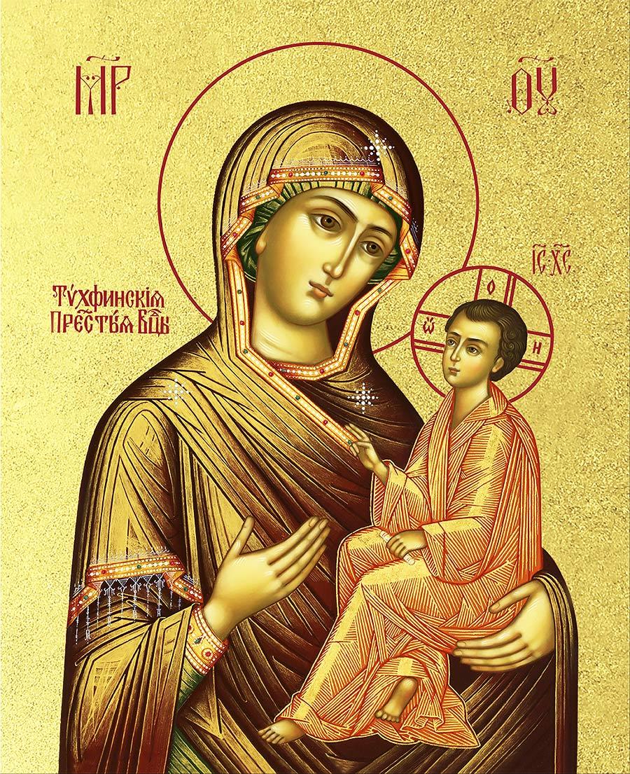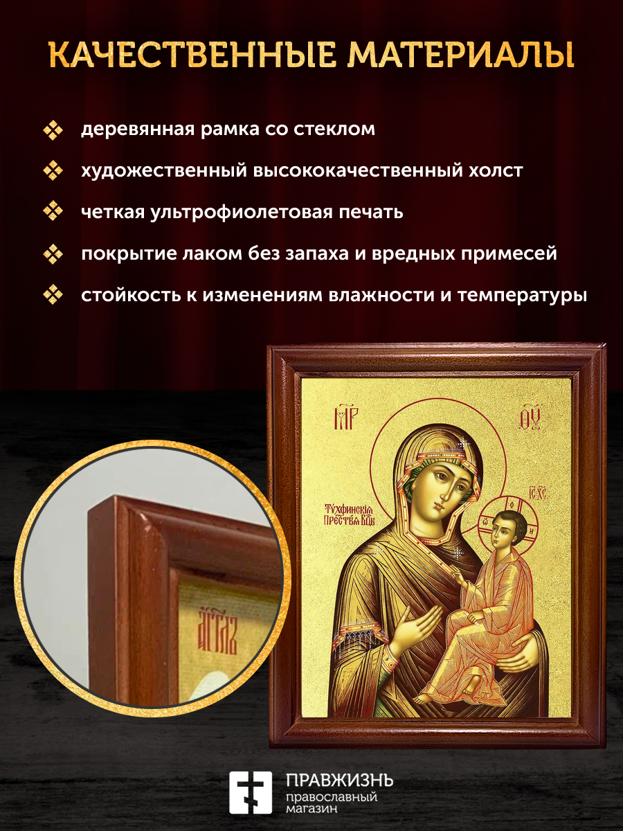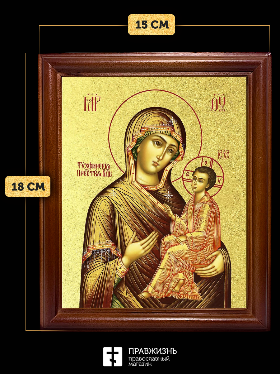 Икона Божией Матери Тихвинская с золочением, деревянная рамка со стеклом 15х18х2 см 150