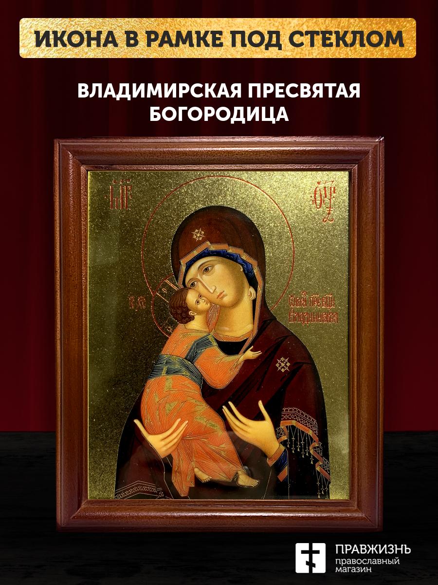 Икона Божией Матери Владимирская с золочением, деревянная рамка со стеклом 15х18х2 см 117