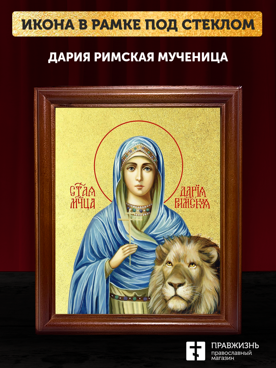 Икона Дария Римская мученица с золочением, деревянная рамка со стеклом 15х18х2 см 063