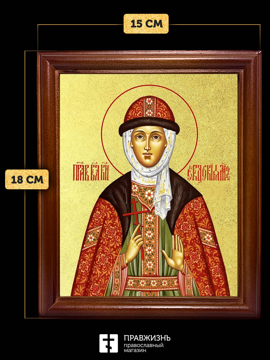 Икона Евдокия Московская праведная с золочением, деревянная рамка со стеклом 15х18х2 см 160
