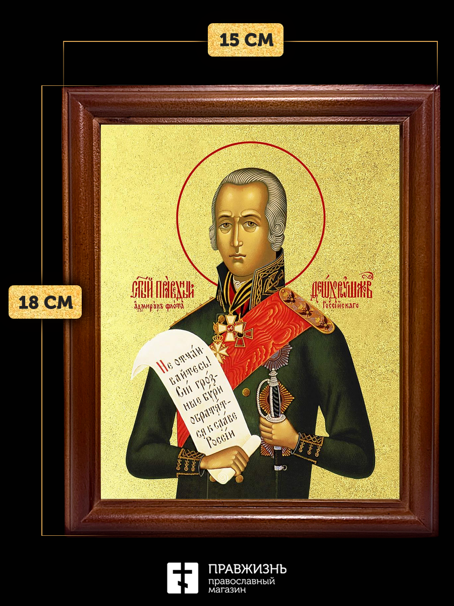 Икона Феодор Ушаков праведный с золочением, деревянная рамка со стеклом 15х18х2 см 144