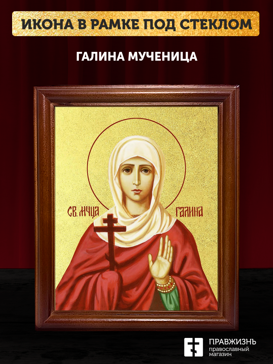 Икона Галина мученица с золочением, деревянная рамка со стеклом 15х18х2 см 056