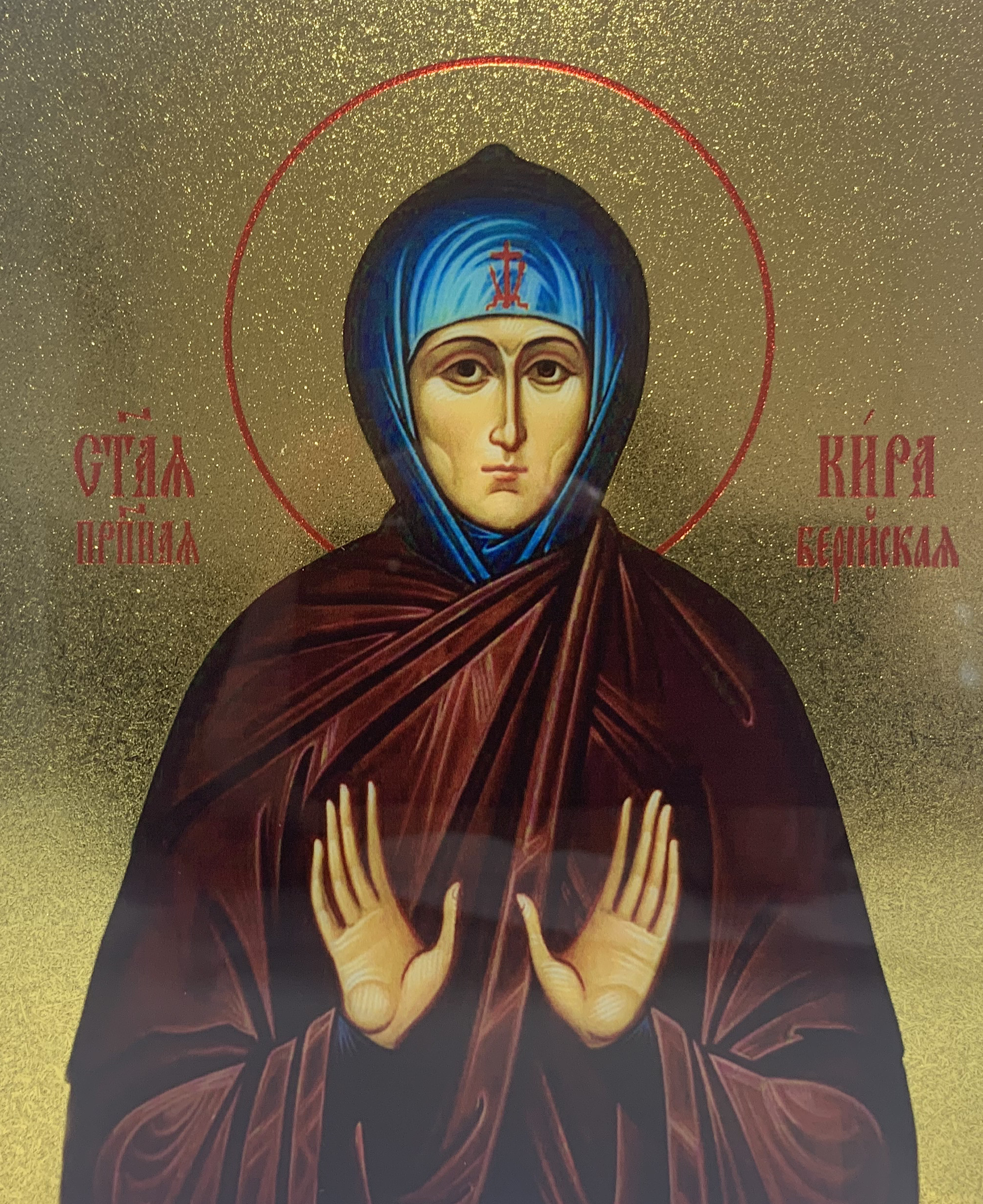 Икона Кира Берийская преподобная с золочением, деревянная рамка со стеклом 15х18х2 см 156