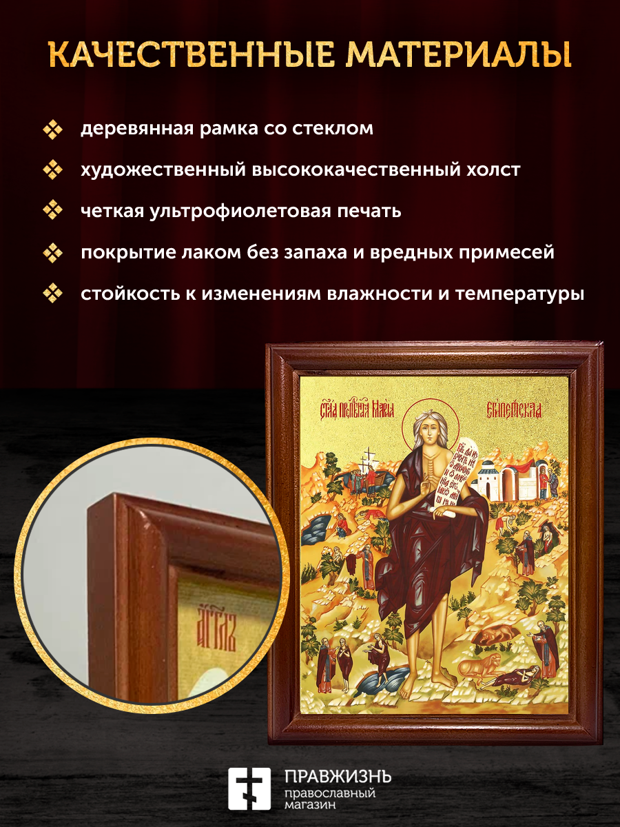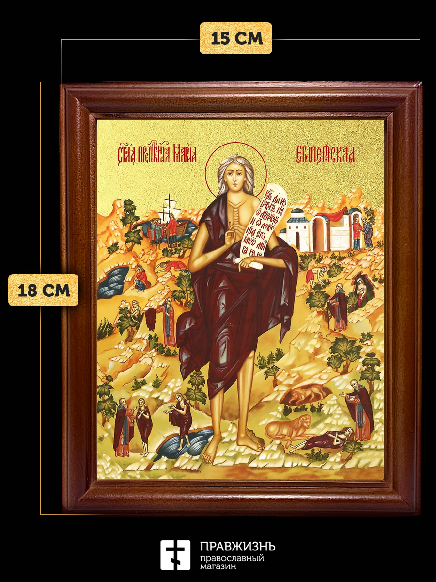 Икона Мария Египетская преподобная с золочением, деревянная рамка со стеклом 15х18х2 см 173