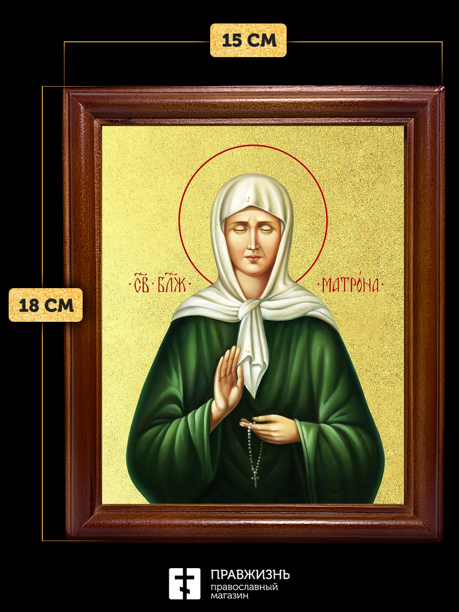 Икона Матрона Московская блаженная с золочением, деревянная рамка со стеклом 15х18х2 см 103