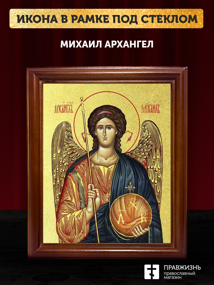 Икона Михаил Архангел с золочением, деревянная рамка со стеклом 15х18х2 см 105