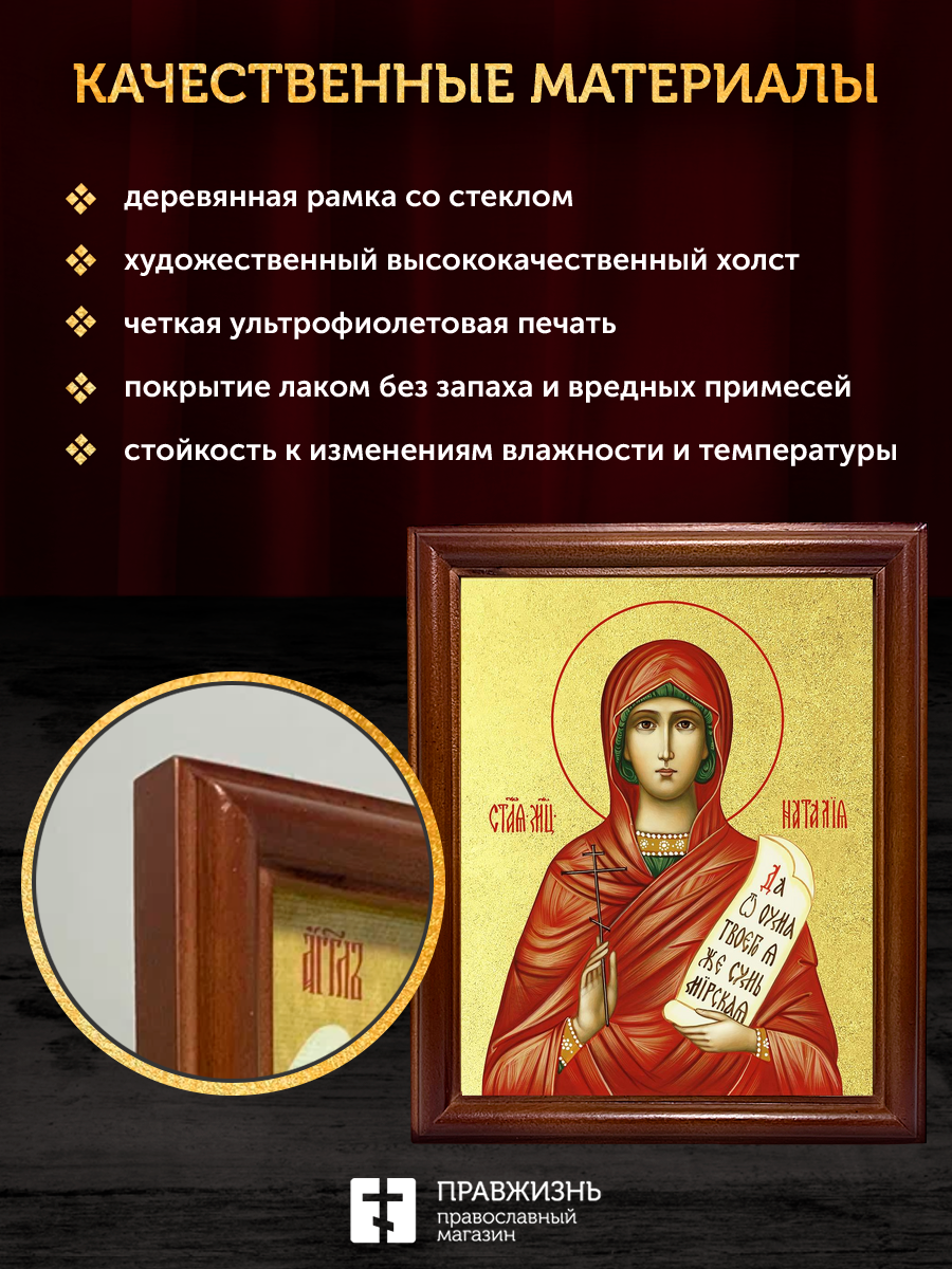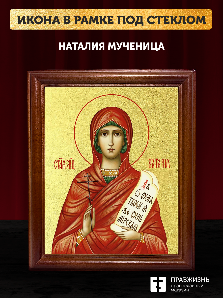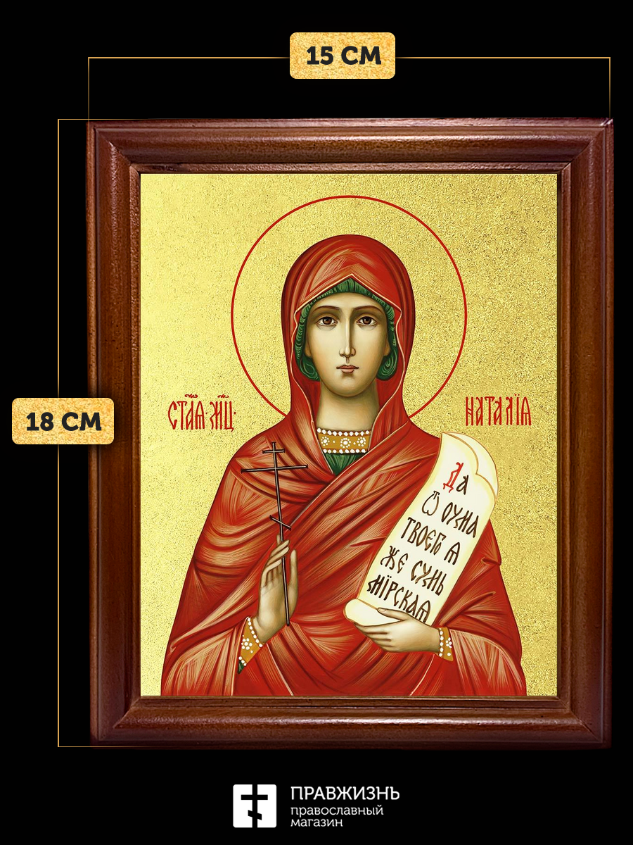 Икона Наталия мученица с золочением, деревянная рамка со стеклом 15х18х2 см 108