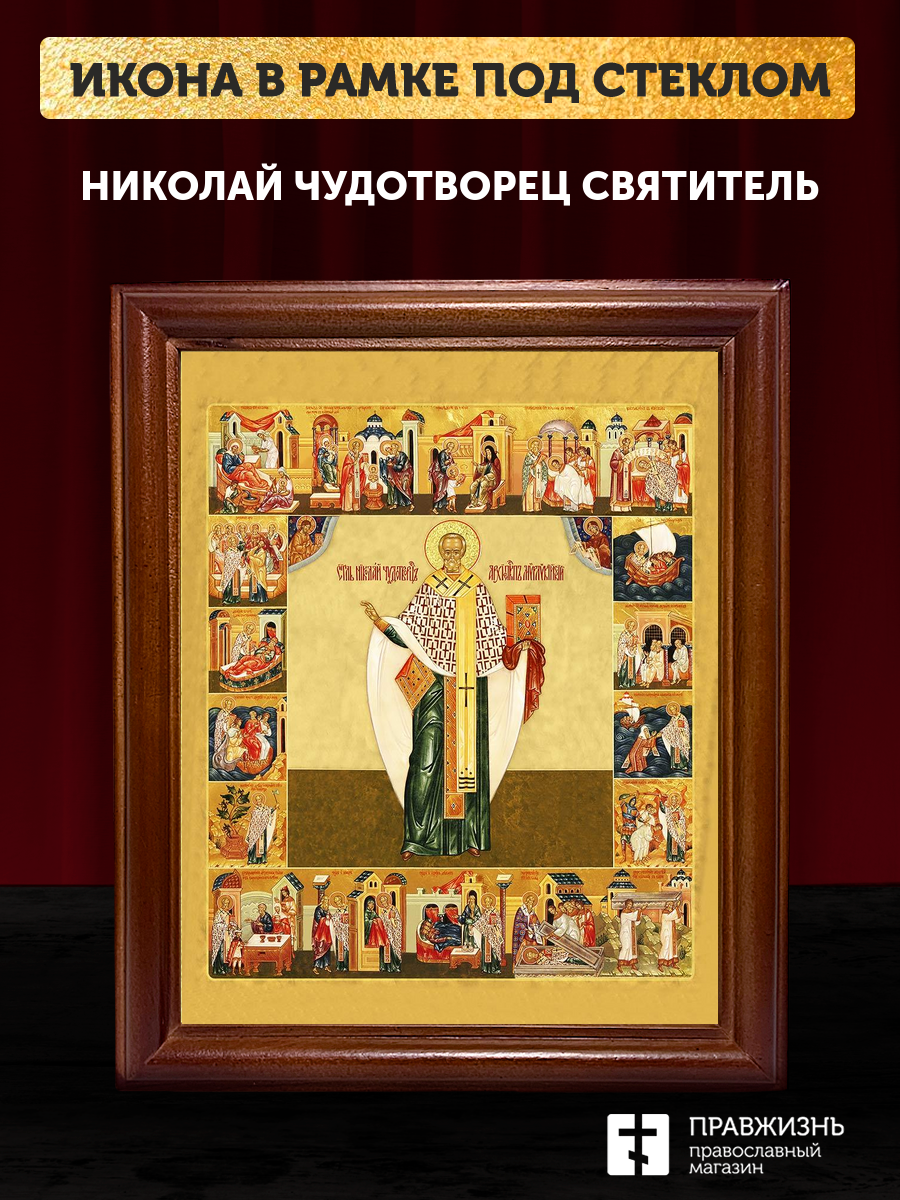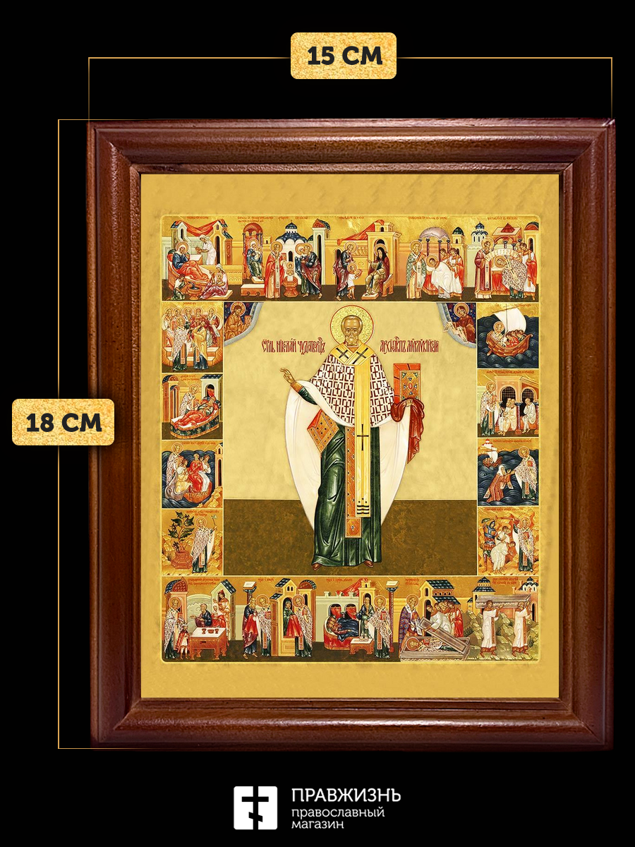 Икона Николай Чудотворец святитель с золочением, деревянная рамка со стеклом 15х18х2 см 110