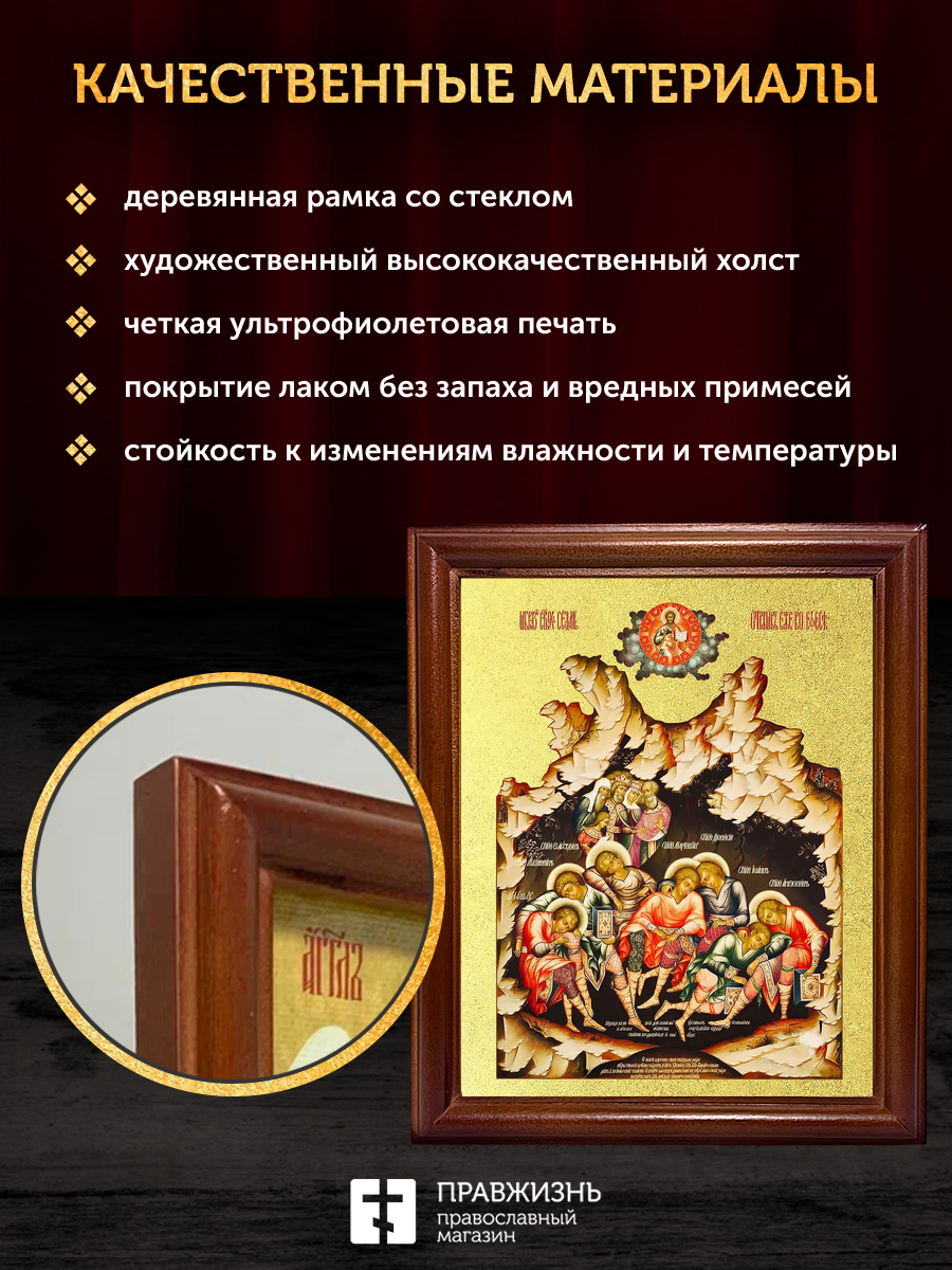 Икона Семь отроков Ефесских с золочением, деревянная рамка со стеклом 15х18х2 см