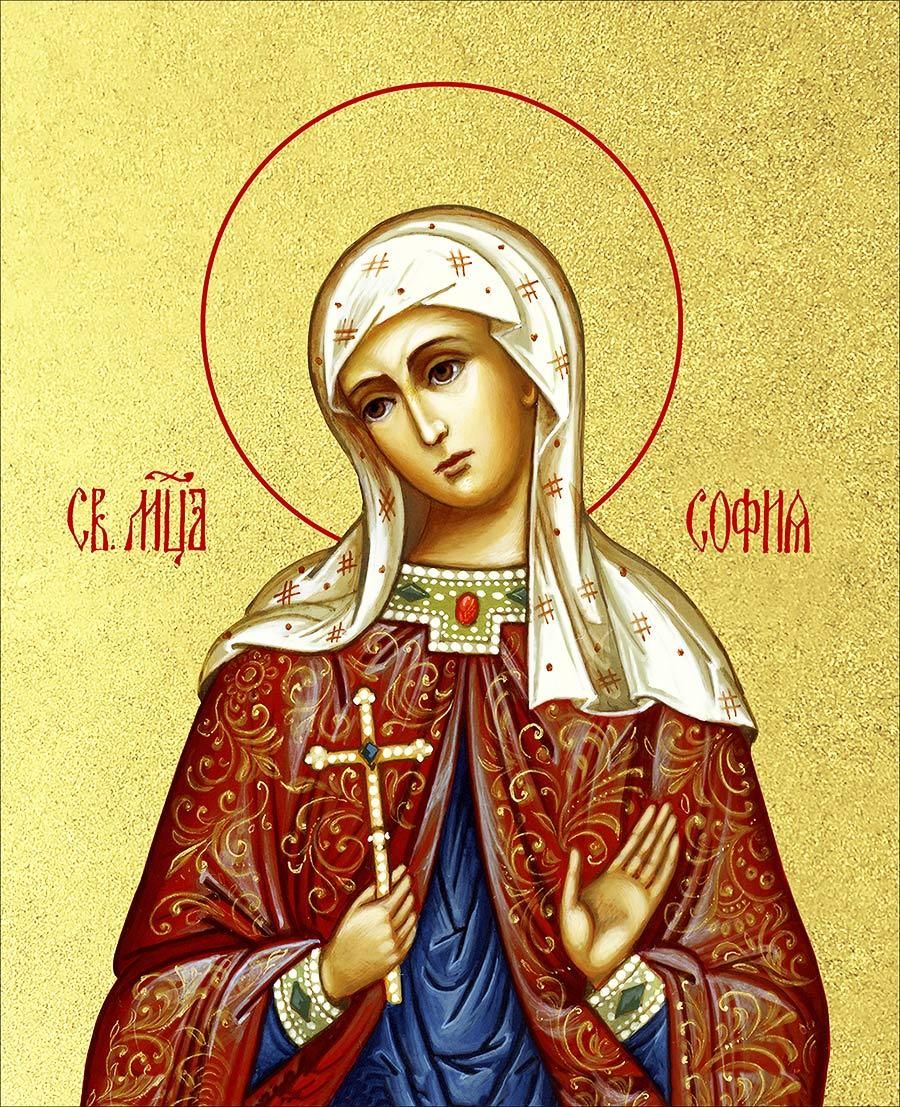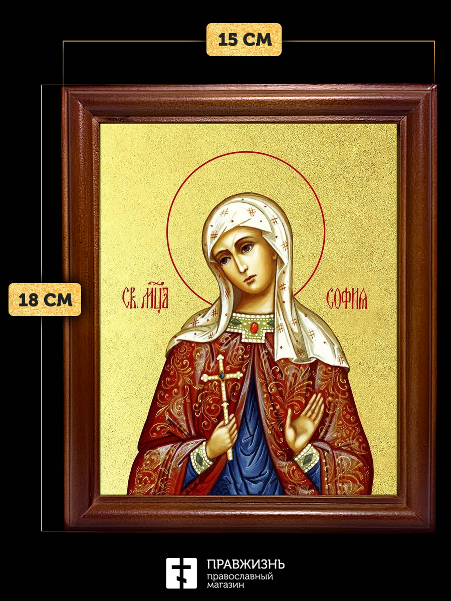 Икона София мученица с золочением, деревянная рамка со стеклом 15х18х2 см 134