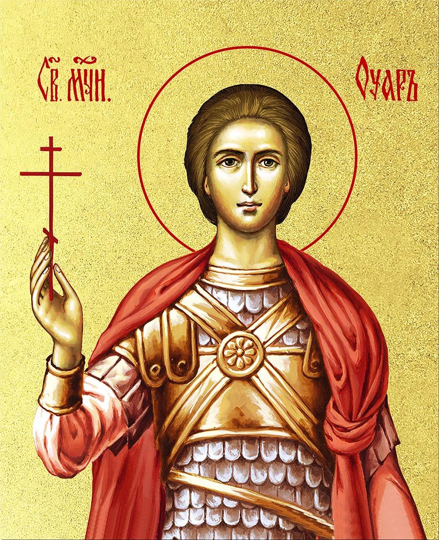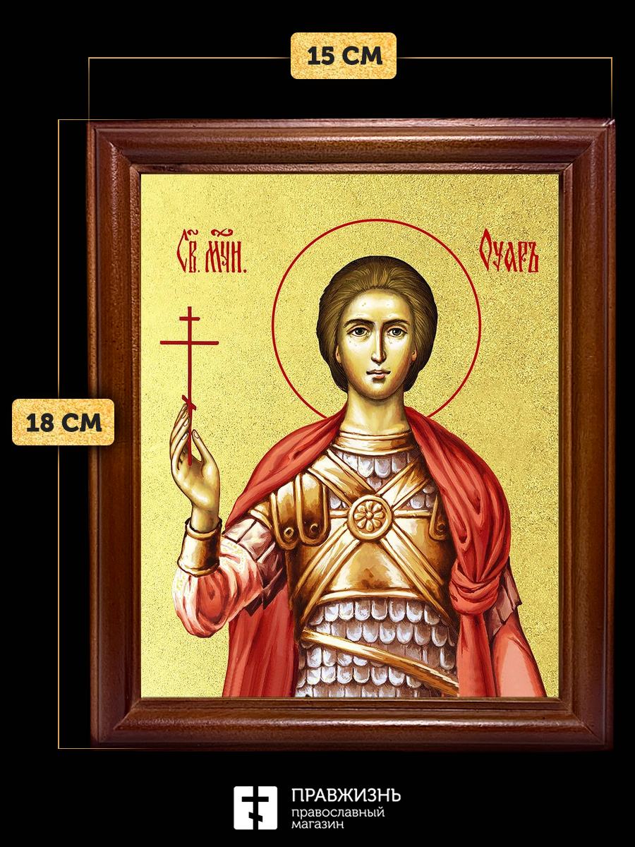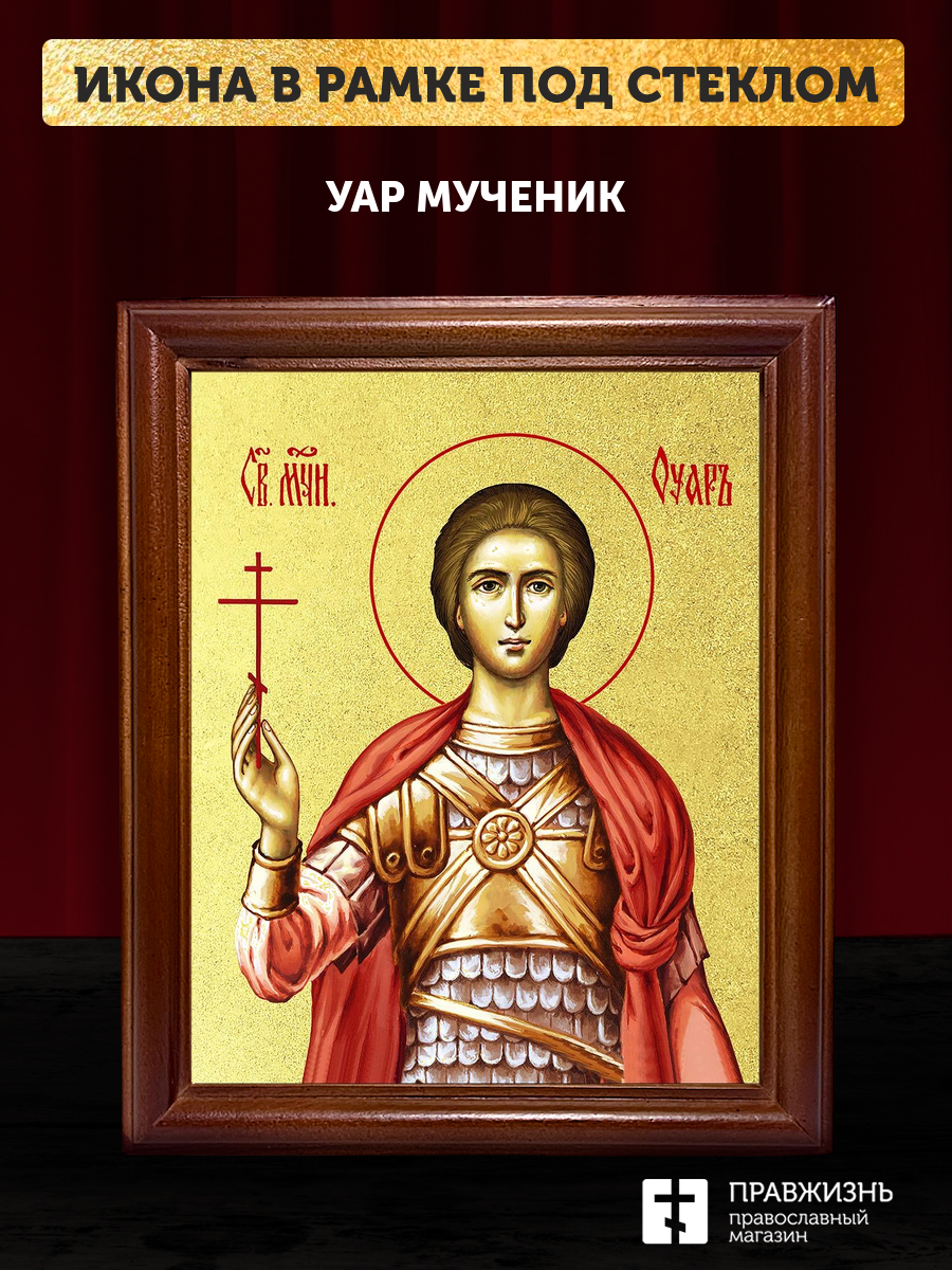 Икона Уар мученик с золочением, деревянная рамка со стеклом 15х18х2 см 1236