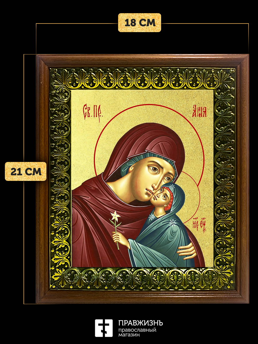 Икона Анна праведная с Пресвятой Богородицей с золочением, деревянная рамка с басмой и стеклом 18х21