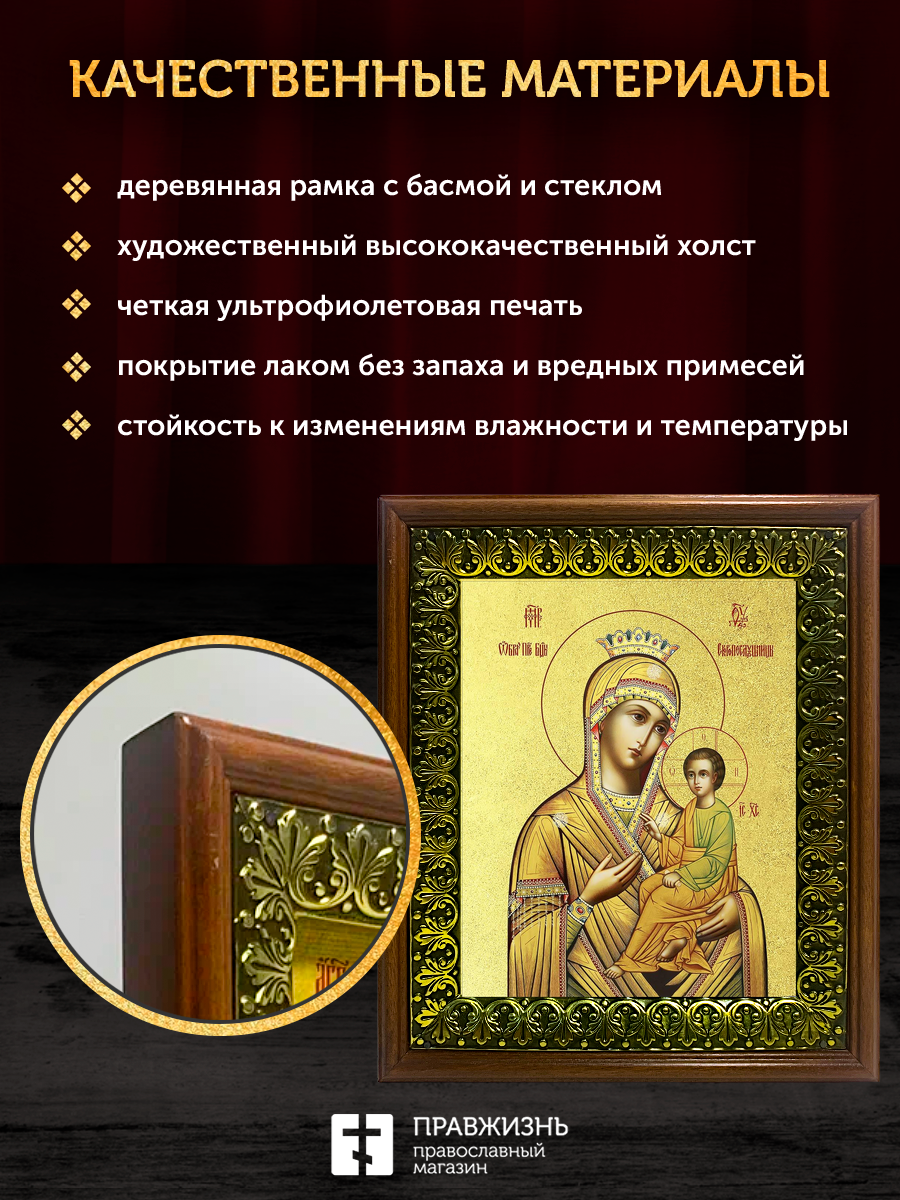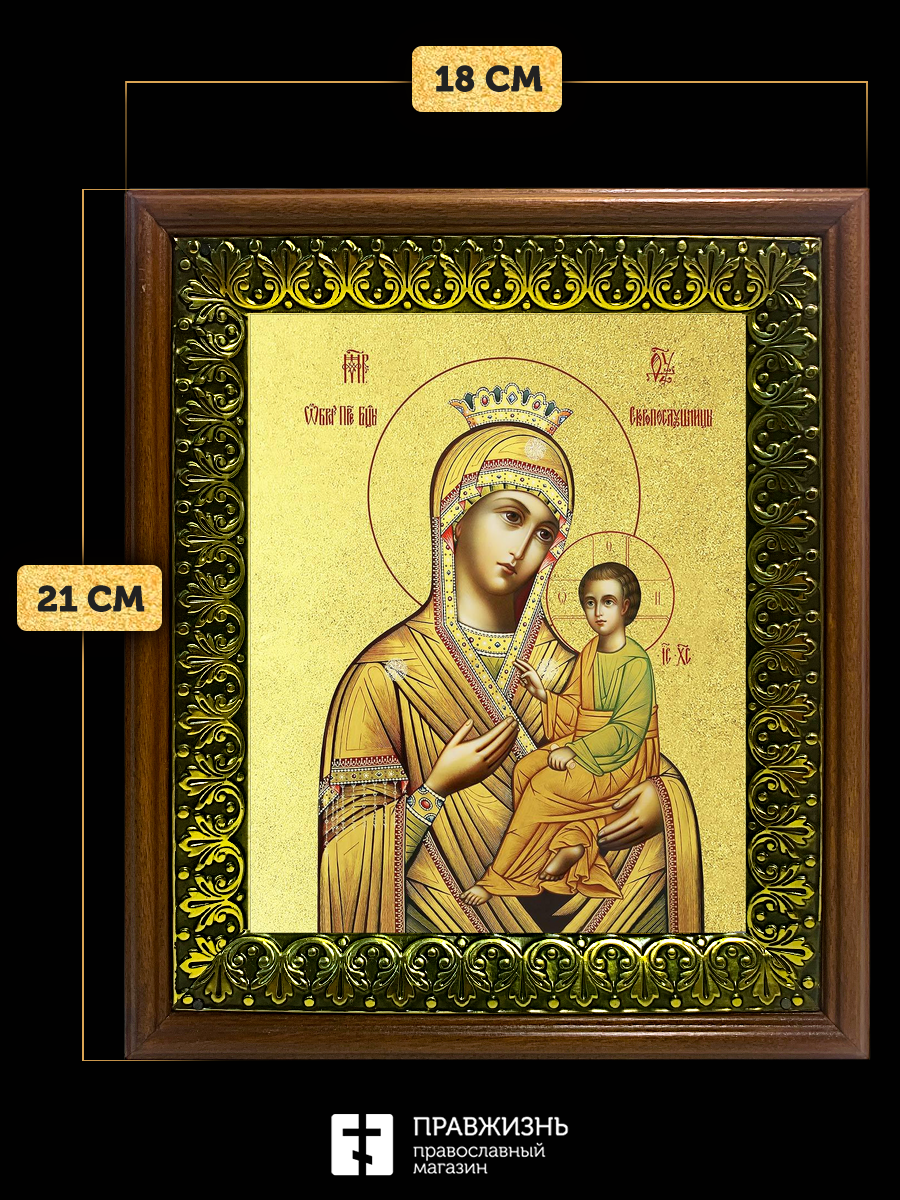 Икона Божией Матери Скоропослушница с золочением, деревянная рамка с басмой и стеклом 18х21х2,5 см 1