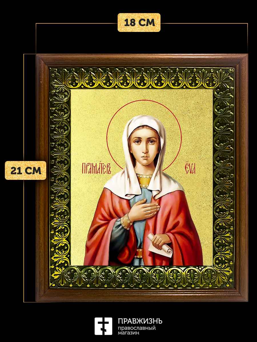 Икона Ева праматерь с золочением, деревянная рамка с басмой и стеклом 18х21х2,5 см 188