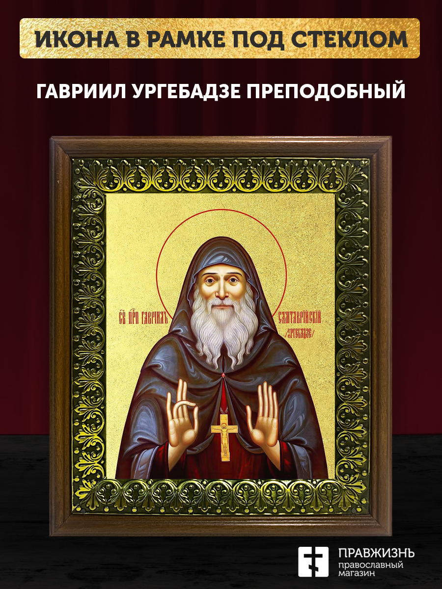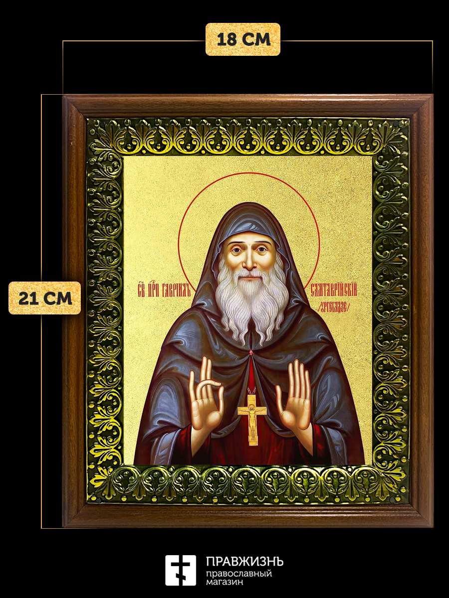 Икона Гавриил Ургебадзе преподобный с золочением, деревянная рамка с басмой и стеклом 18х21х2,5 см 3