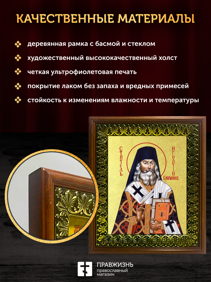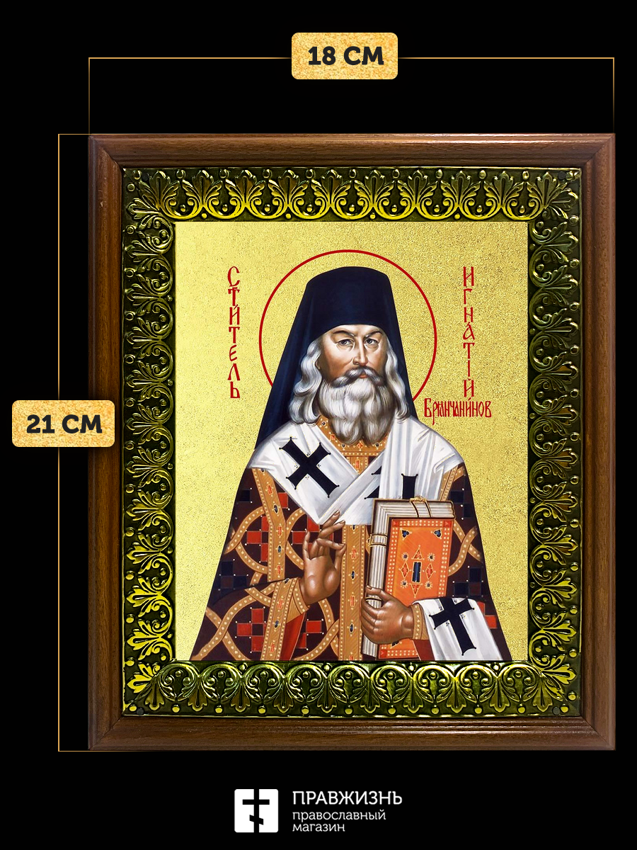 Икона Игнатий Брянчанинов святитель с золочением, деревянная рамка с басмой и стеклом 18х21х2,5 см 3