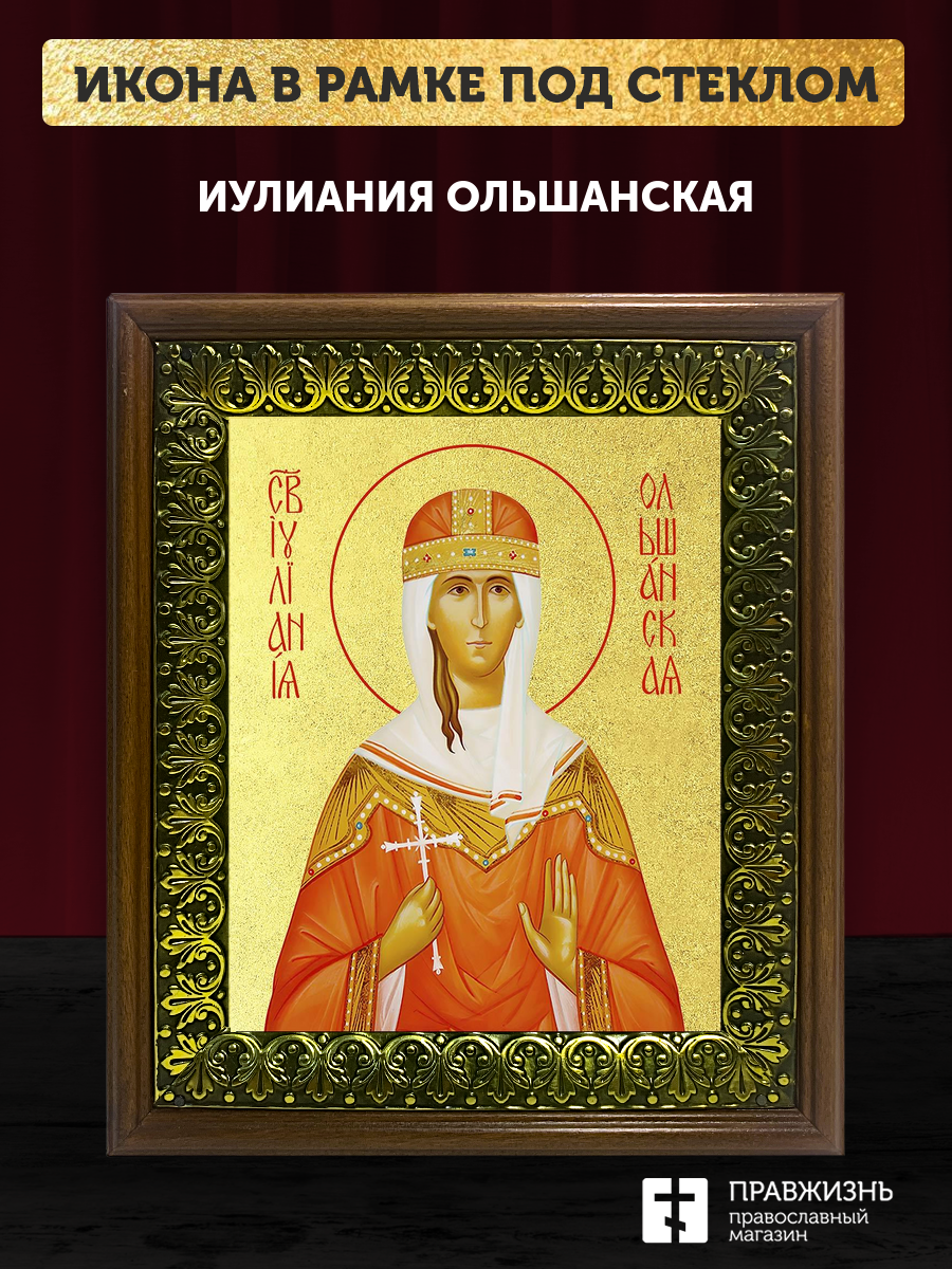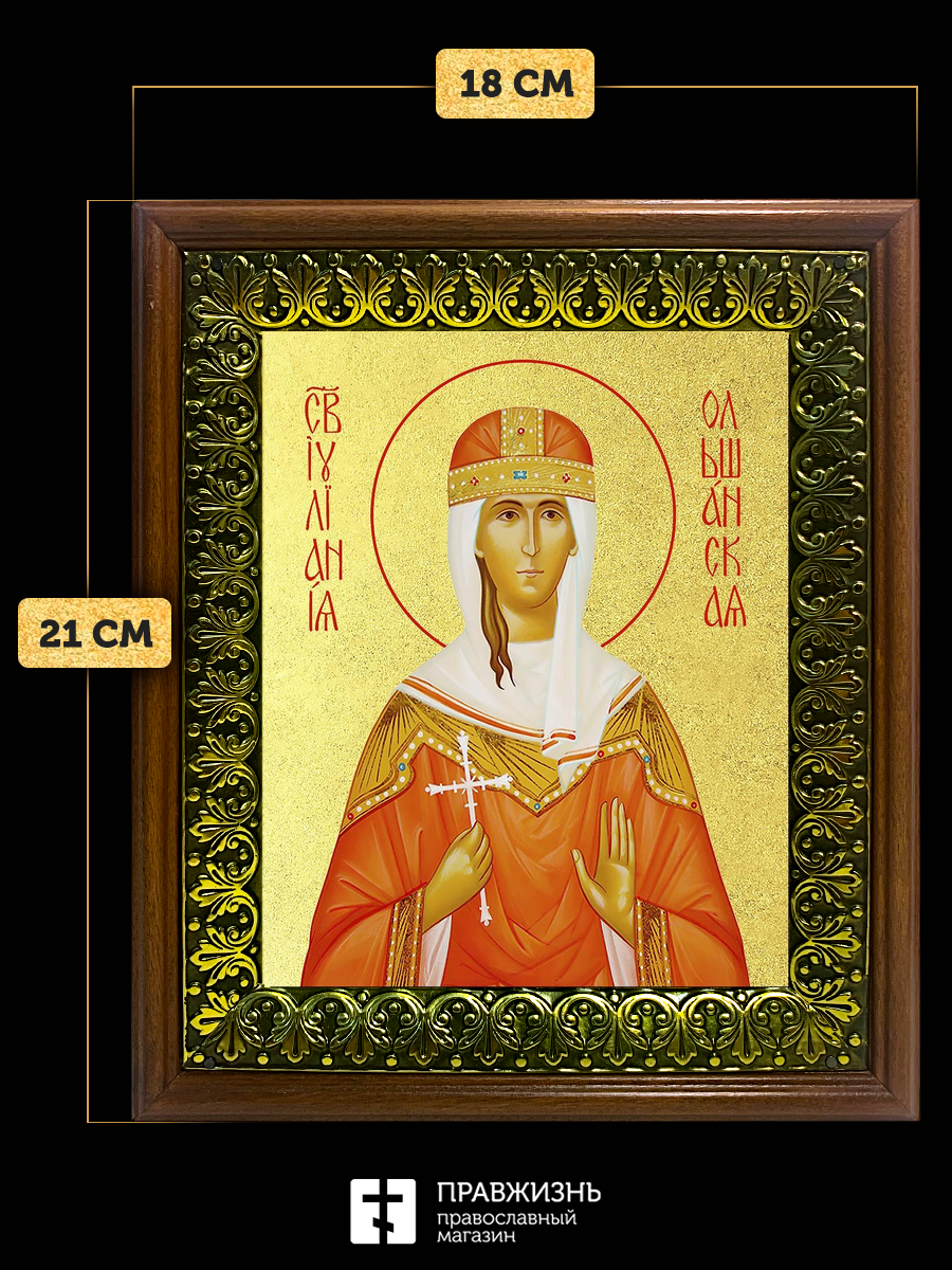 Икона Иулиания Ольшанская с золочением, деревянная рамка с басмой и стеклом 18х21х2,5 см 180