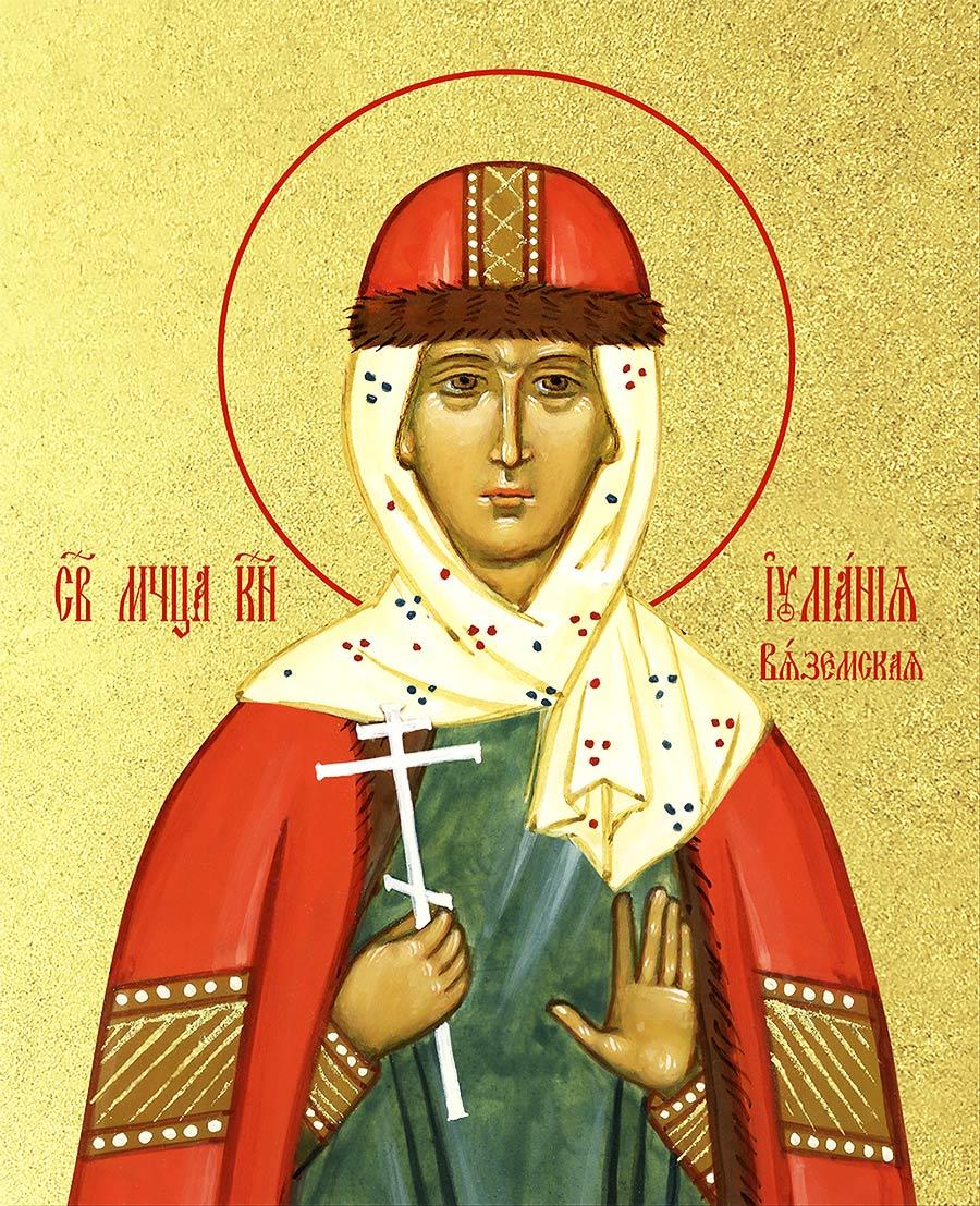 Икона Иулиания Вяземская с золочением, деревянная рамка с басмой и стеклом 18х21х2,5 см 1240