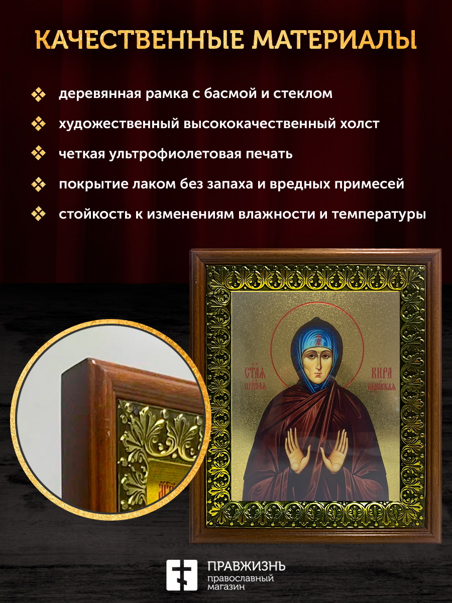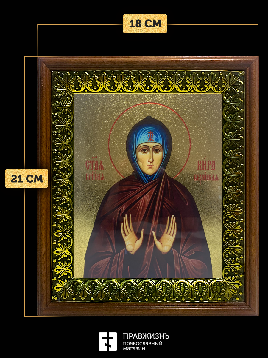Икона Кира Берийская преподобная с золочением, деревянная рамка с басмой и стеклом 18х21х2,5 см 156