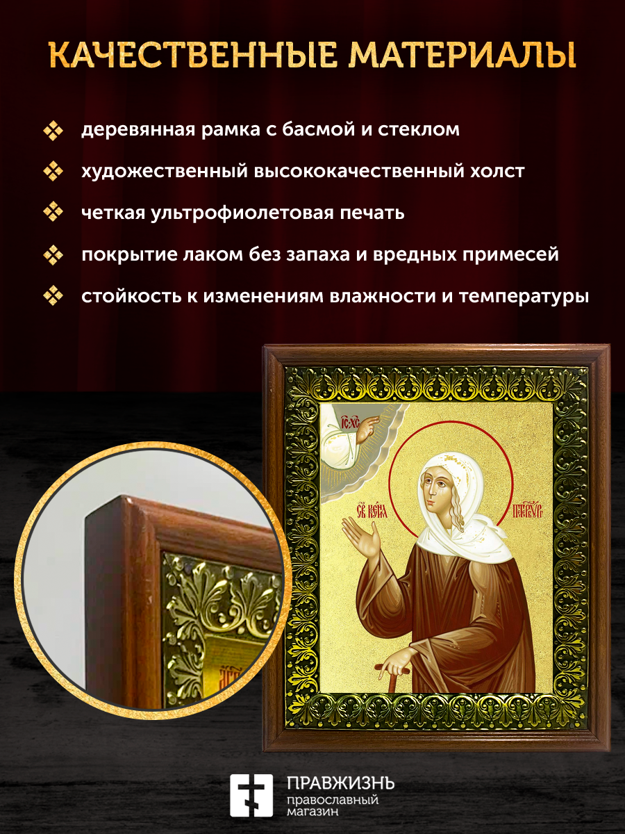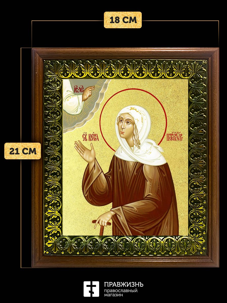 Икона Ксения Петербургская блаженная с золочением, деревянная рамка с басмой и стеклом 18х21х2,5 см