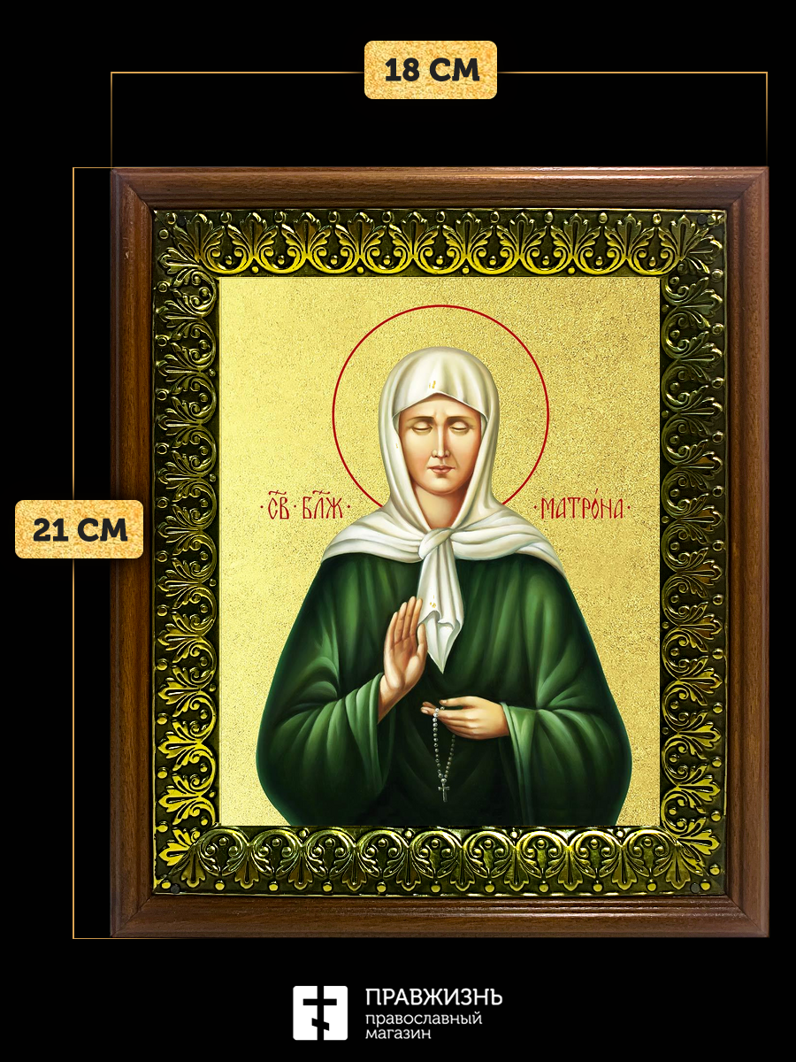 Икона Матрона Московская блаженная с золочением, деревянная рамка с басмой и стеклом 18х21х2,5 см 10
