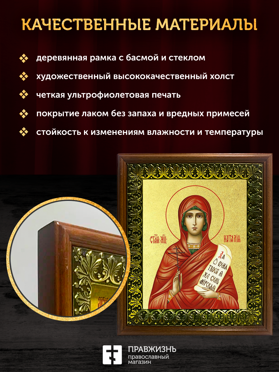Икона Наталия мученица с золочением, деревянная рамка с басмой и стеклом 18х21х2,5 см 108
