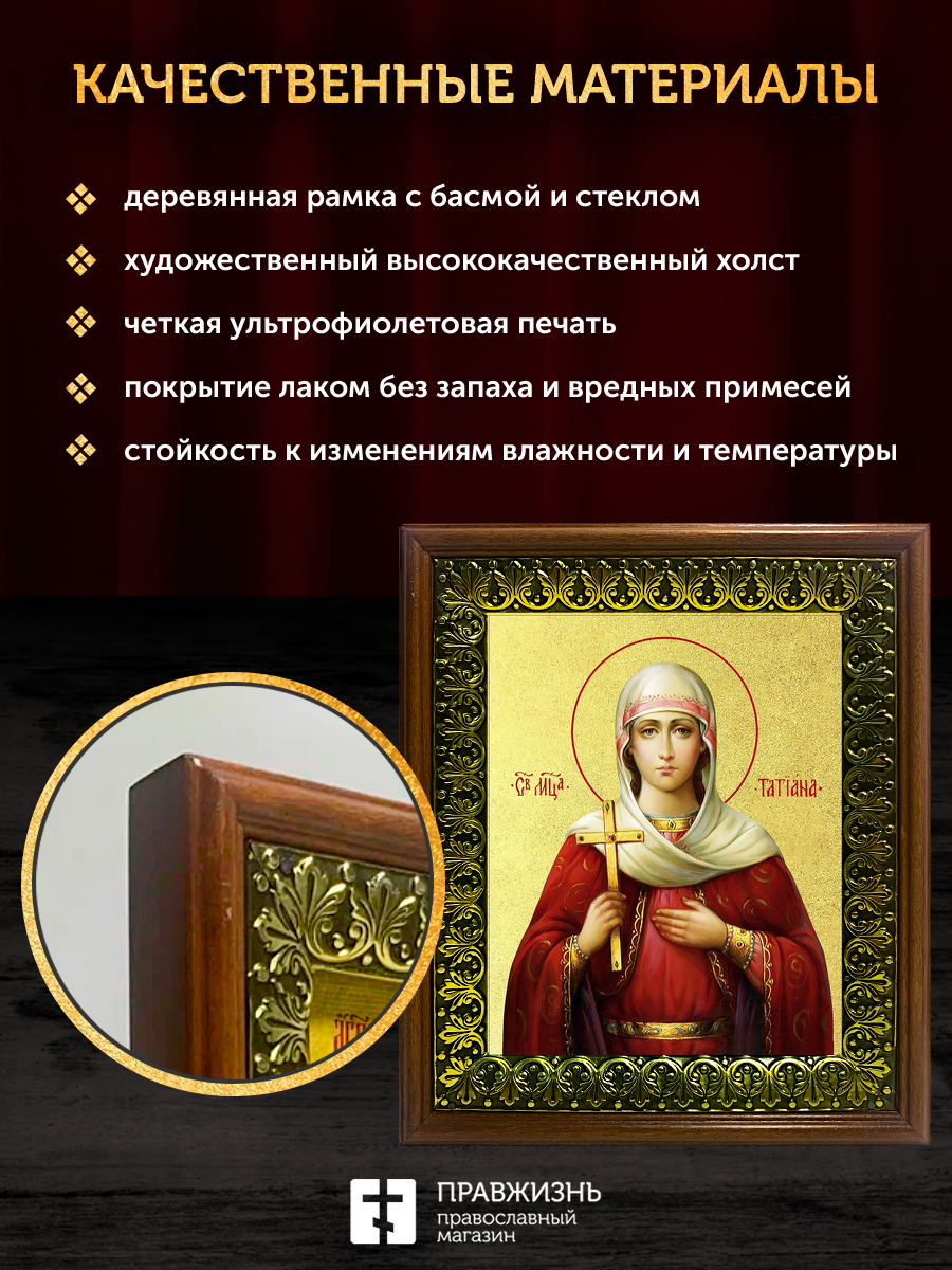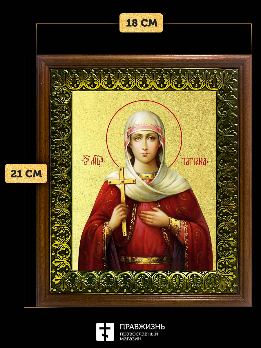 Икона Татьяна Римская мученица с золочением, деревянная рамка с басмой и стеклом 18х21х2,5 см 137