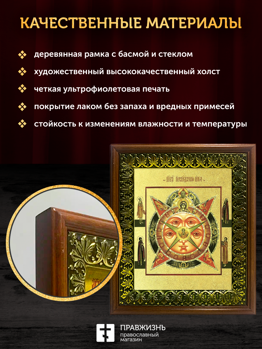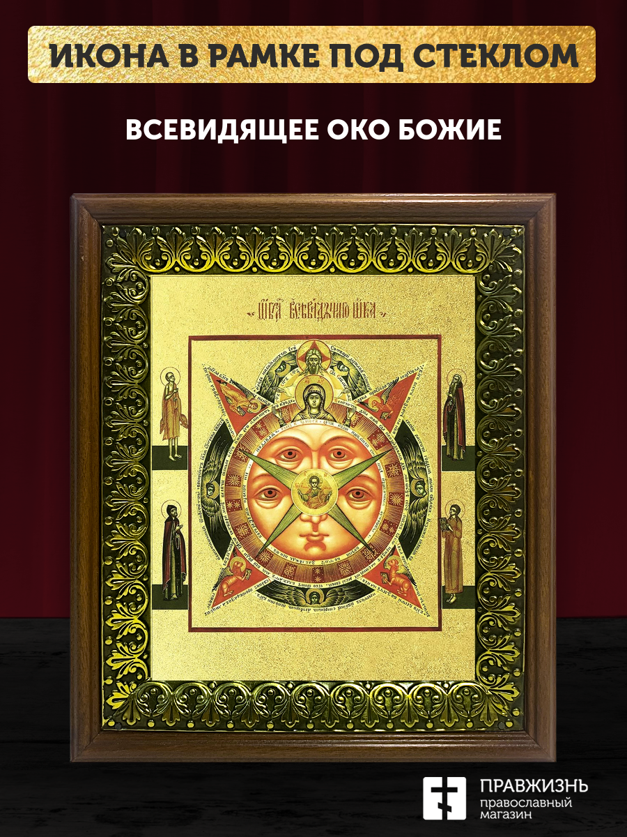 Икона Всевидящее Око Божие с золочением, деревянная рамка с басмой и стеклом 18х21х2,5 см 1114