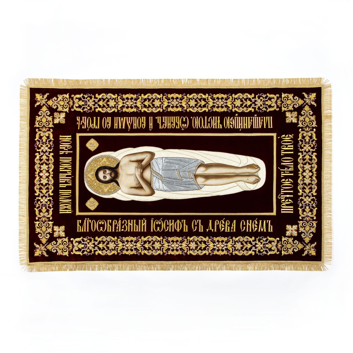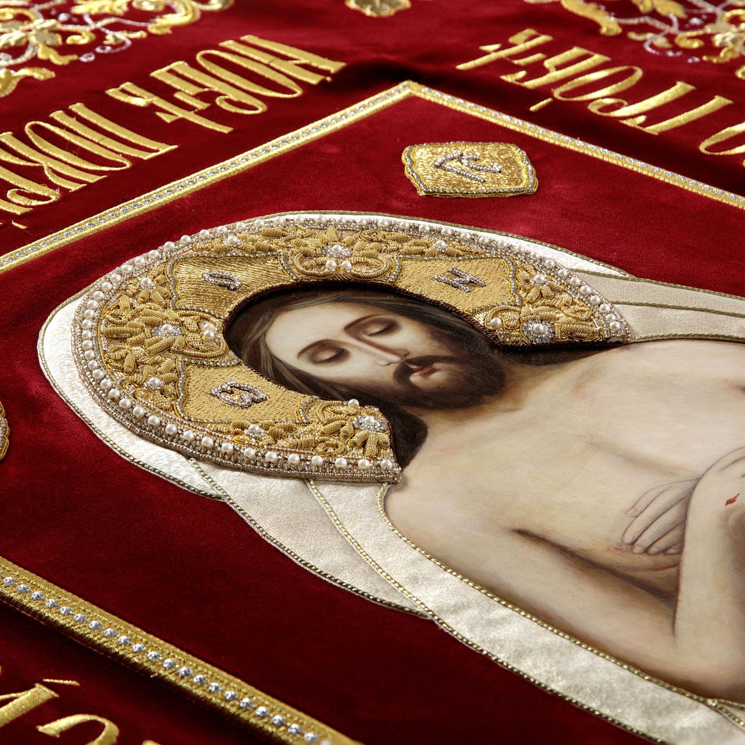 Плащаница выносная вышивка объемная автомат+ручная изображение живопись Спасителя