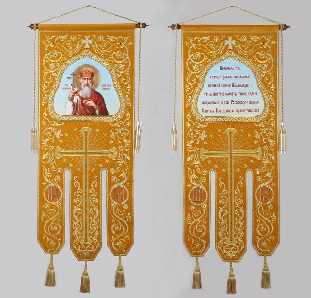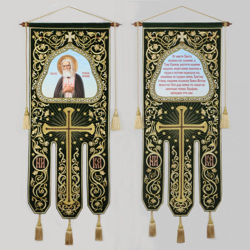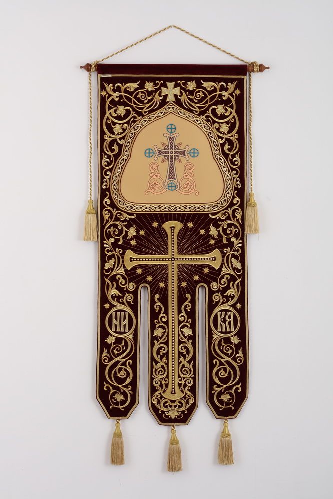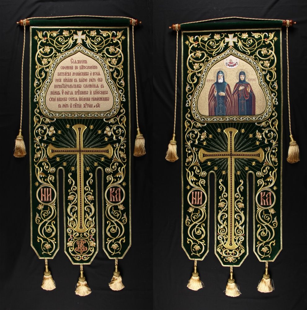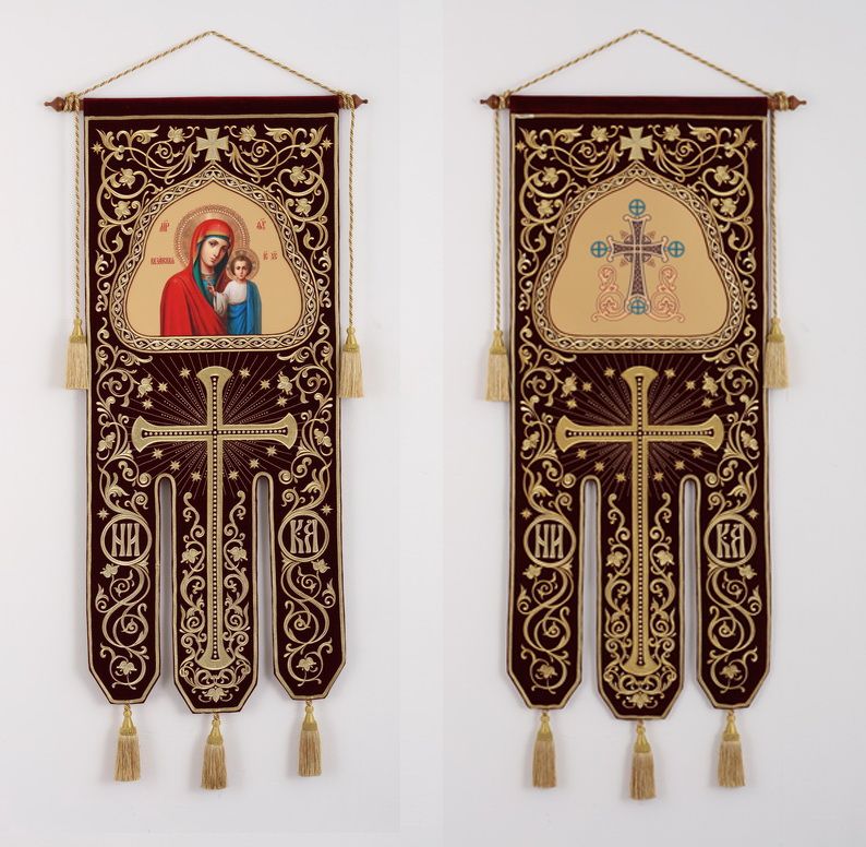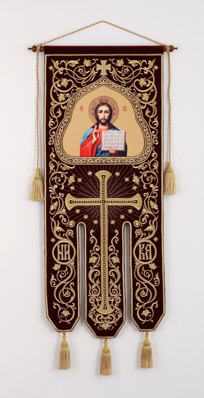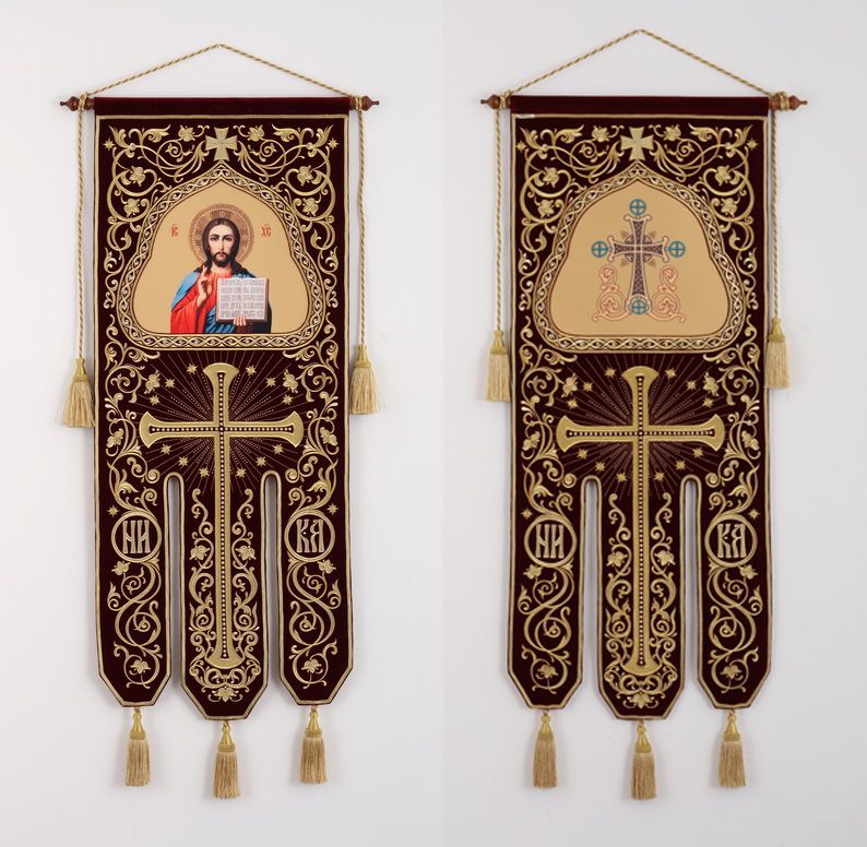 Хоругвь бархатная двухстороняя вышивка а / м (в комплекте древко и оглавие)