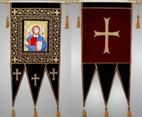 Хоругви с вышитой иконой - это традиционный православно-церковный атрибут, использующийся в торжественном шествии священнослужителей. Православно-церковные хоругви характеризуются богатым, религиозным и эстетичным внешним видом. В них находится глубокая церковная символика, которая включает в себя всю историю становления религии. Духовно-православные хоругви могут сделать в Церкви неповторимую праздничную и величественную обстановку, в которой можно отступиться от бытовых проблем. Изысканные церковные хоругви являются элементом церковного интерьера потому они также помогают единению верующего с Господом.