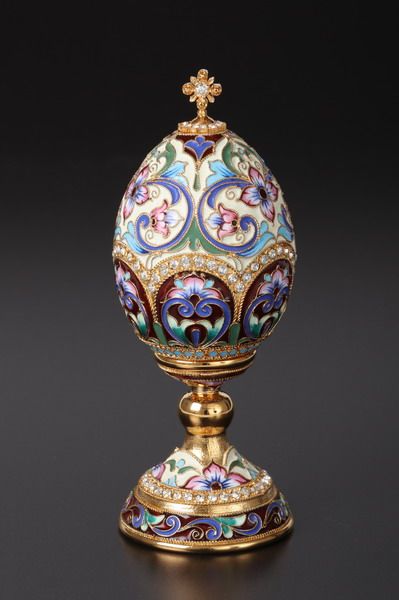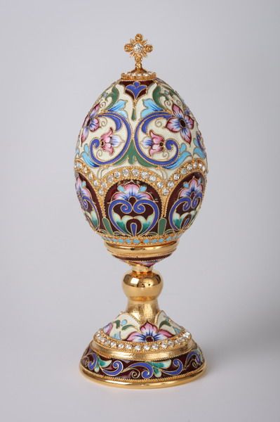 Яйцо пасхальное филигрань, эмаль, роспись, камни на подставке №2 / золочение