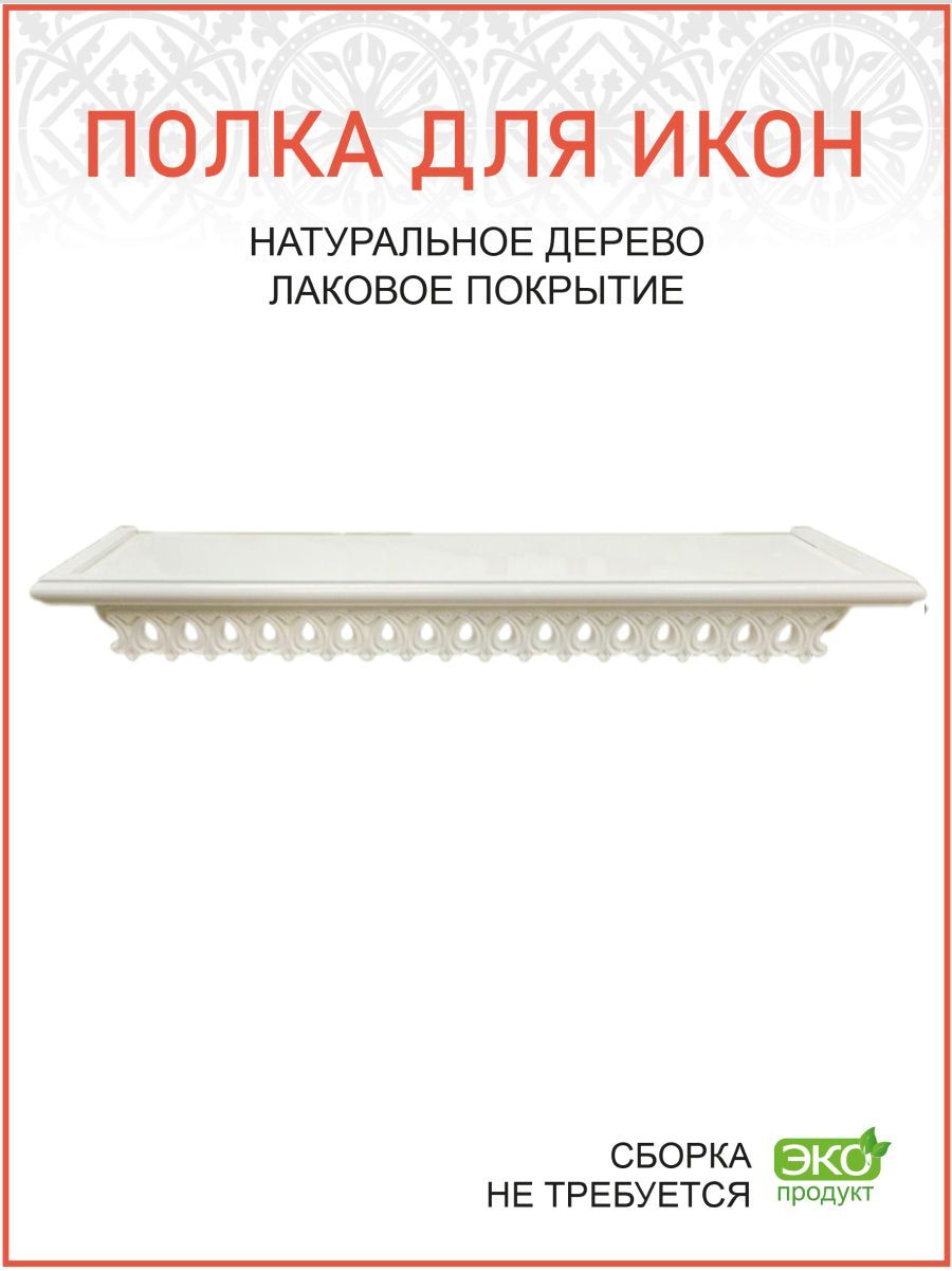 Полка для икон 1 ярусная прямая удлиненная ажурная белая