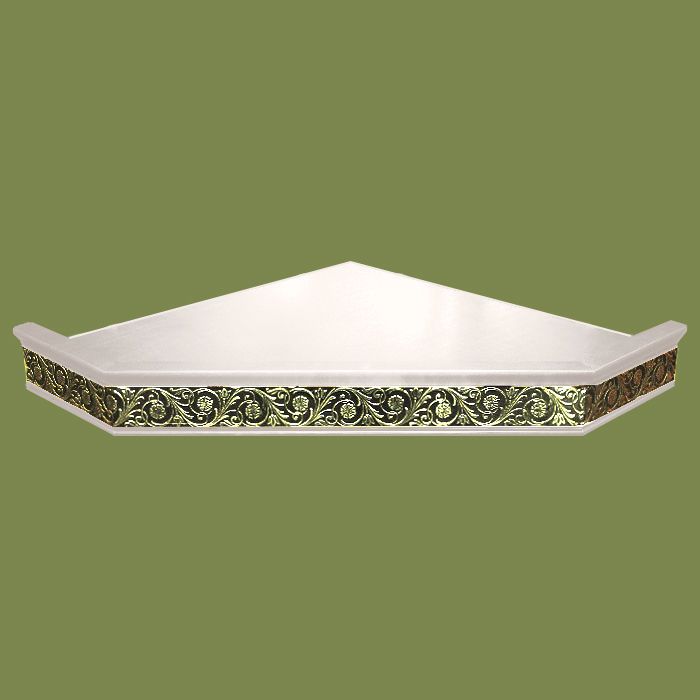 Полка для икон 1 ярусная с басмой, угловая, белая, 63х44см