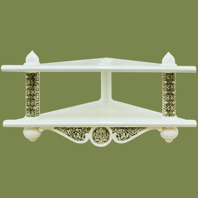 Полка для икон 2-х ярусная угловая с басмой низкая, белая