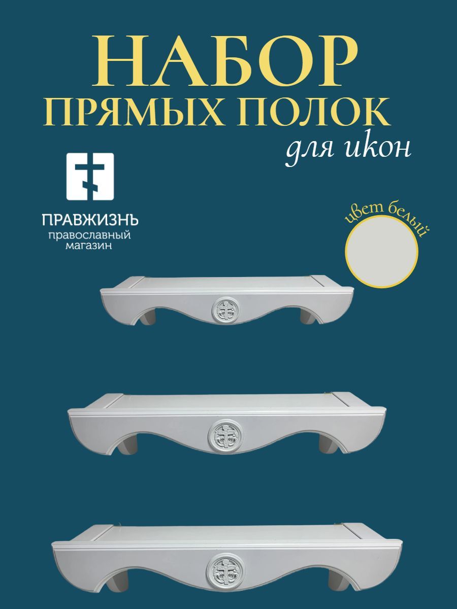 Набор полки прямые для икон Крест цвет холодный белый 3 шт 40, 50 и 60 см