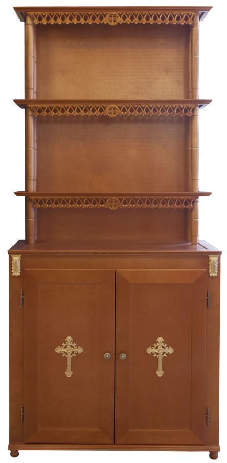 Шкаф-стеллаж - домашний иконостас прямой с резными узорами