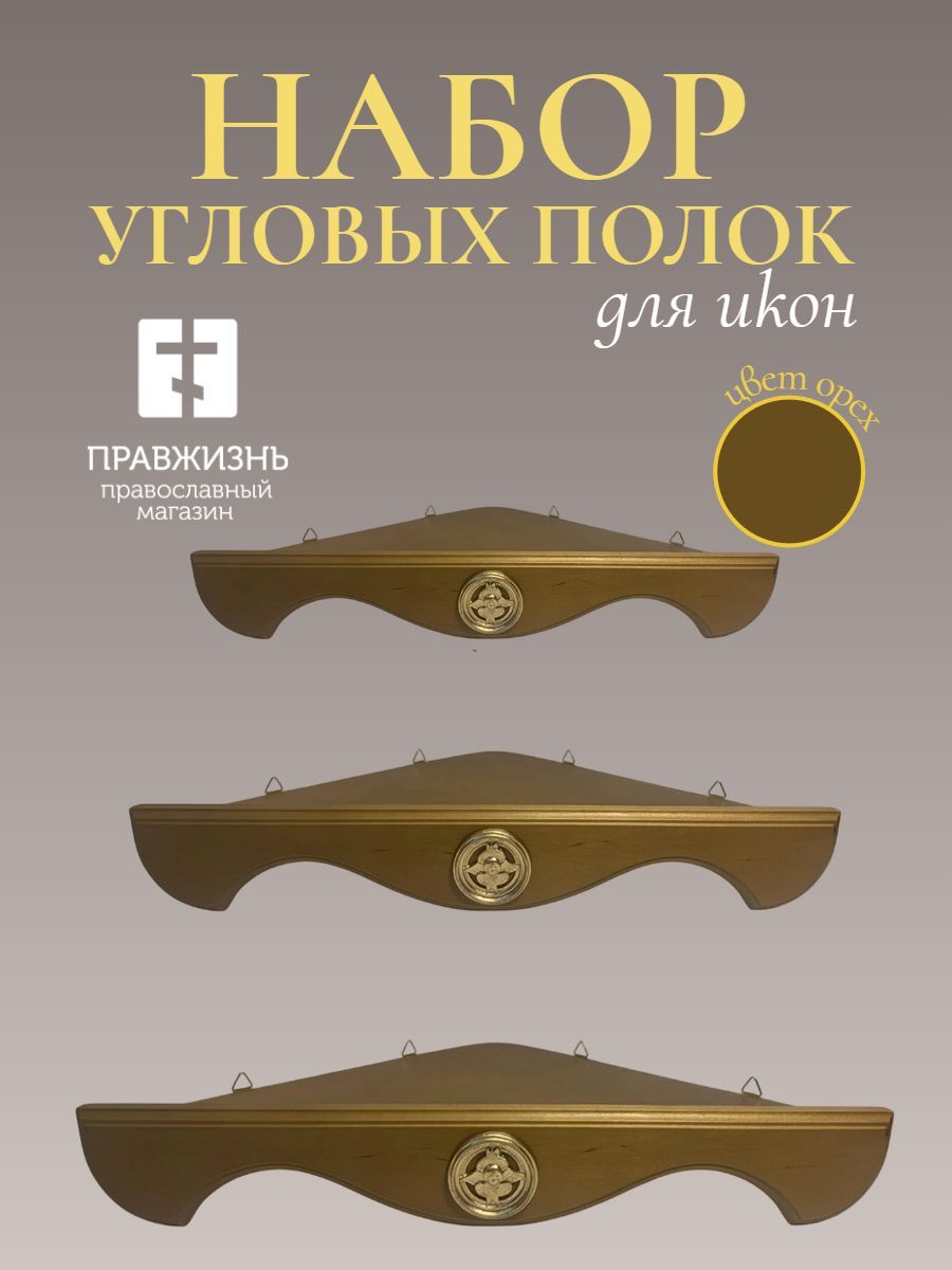 Набор полки угловые для икон Херувим цвет орех 3 шт 40, 50 и 60 см