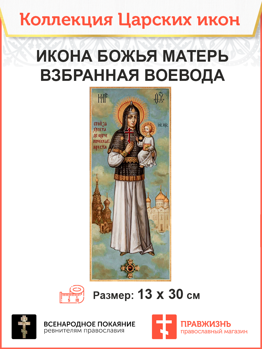017 ИКОНА Божия Матерь Взбранная Воевода Оранта 13 х 30